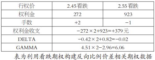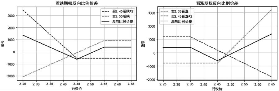 具有看对行情时大赚,看错行情时亏损减少的特性 反向比例价差策略属于Gamma Scalping中常见的期权组合之一,它经常出现在期权交易基金的配置当中,主要用于防止股市出现“黑天鹅”事件或是用于方向性交易,因此,可以作为做空波动率的辅助策略。 在期权交易实务中,反向比例价差策略一方面难以掌握,另一方面还容易出现胜率过低、难以坚持的现象,造成该策略胜率较低主要是因为股市以小波动为主、大波动为辅,而此策略主要在大波动的交易日盈利,在小波动的交易日总是出现小亏的情形。本文主要介绍反向比例价差策略的构建以及运用。 [反向比例价差策略构建] 反向比例价差策略分别由看涨期权和看跌期权构建,我们先通过反向比例看涨价差策略来认识反向比例价差,该策略与正向比例认购价差策略相反,一般是买入若干个虚值看涨合约并卖出一个实值看涨合约,从而在开仓时实现权利金净收入。总体上这是一个看多波动率且对后市偏看多的策略:标的大幅上涨时,这个策略会从买入虚值看涨期权中获取收益;而如果标的价格下跌了,虽然损失了看涨期权的权利金,但是因为构建策略伊始权利金是净收入的,策略组合整体依然有收益。当然,因为整个策略的Gamma是正的,如果标的价格没有变化,那么投资者将会遭受损失。同理,如果判断后市看多波动率且对后市偏看空,可以采用看跌期权构建反向比例价差。 例如:2024年4月3日,50ETF收盘2.463,国内市场将面临为期4天的清明假期休市,为了防范境外市场剧烈波动对国内权益市场出现影响,此时可以选择买入两手2.45看跌期权,并卖出一手2.55的看跌期权。详情如表: