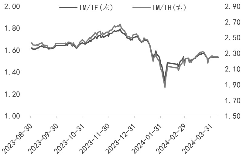 图为期指主力合约比价走势 上周五,美国劳工部公布3月非农就业报告,数据显示出美国劳动力市场强劲韧性。其中,3月新增非农就业人数增长达到30.3万人,远超市场预期的20万人,并创下近11个月以来的单月最高纪录。失业率降至3.8%,低于预期和前值的3.9%,进一步印证了就业市场的活跃。非农数据的超预期表现,使得市场进一步修正对美联储降息的预期。美联储理事鲍曼发言表示,如果通胀持续高于2%的目标水平,美联储可能不会急于降息,而是可能进一步加息。这一鹰派立场的强化,使得市场对美联储在5月和6月维持观望态度的可能性增大,降息预期的时间点也随之推迟。数据落地后,当日美元指数振荡上行,美股全线上涨。对A股市场而言,美国非农数据的强劲表现和美联储的降息预期调整,可能会对市场情绪产生一定的影响,但加息周期大概率结束的背景下,预期波动产生的影响以短期为主。 国内方面,清明节假期期间全国国内旅游出游1.19亿人次,较2019年同期增长11.5%,国内游客出游花费539.5亿元,较2019年同期增长12.7%,人均旅游支出恢复至2019年的101%,自2020年以来首次超过疫情前水平。此外,电影票房收入突破8亿元,刷新了清明档票房的历史纪录,部分地区家电销售实现翻倍增长。假期消费市场积极回暖,尤其是人均旅游支出的增加显示出消费者信心的恢复,“五一”及暑期旺季景气可期。 2月以来流动性危机解除后,股指市场已经延续了一个多月的“V”形反弹;近期随着政策的逐步落地,市场开始出现技术性振荡调整,我们认为投资者信心的恢复是一个渐进的过程,市场情绪的完全扭转需要时间。此外,虽然1—2月的出口和通胀数据超预期,3月PMI重回荣枯线以上,但市场交易者仍持谨慎态度。特别是地产投资的持续低迷和房企资金链紧张的局面暂未得到有效缓解,这些因素都可能对反弹空间形成限制,市场交易者可能在等待更多明确的经济数据和政策信号。 展望二季度,海外流动性环境的变化将对市场产生重要影响。美联储的降息预期修正、日本央行的鸽式加息以及瑞士央行的超预期降息,共同推动了美元指数的上涨,这可能会对人民币汇率和权益市场风险偏好产生影响。在美国经济韧性表现下,中美利差或继续维持低位,人民币汇率升值过程预计相对缓慢,进而在一定程度上影响跨境资金流动与市场情绪。