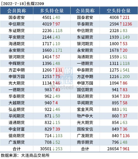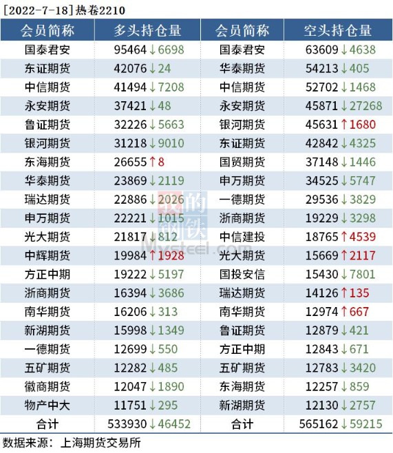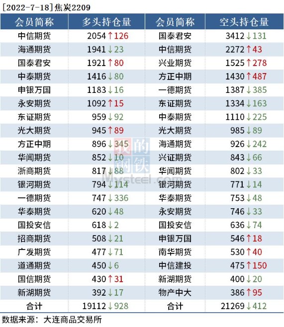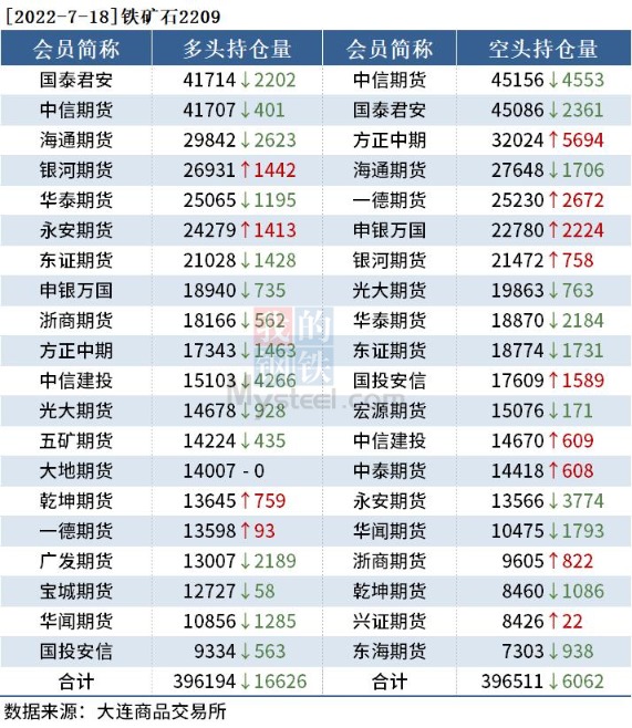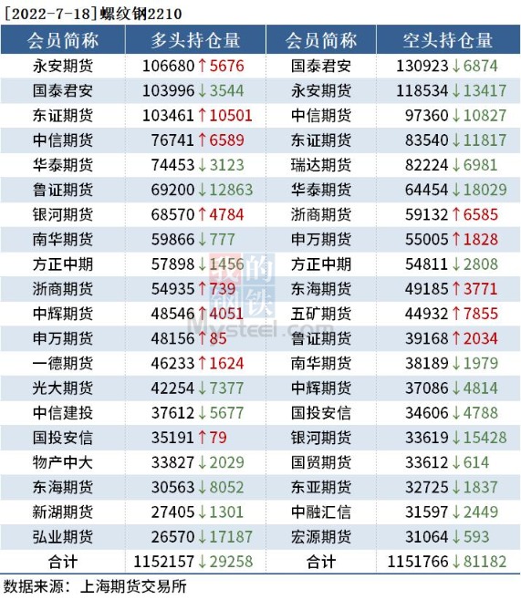 黑色持仓日报:期螺涨2.05% 永安期货减持超1.3万手空单 我的钢铁网 07月18日 截至7月18日收盘,螺纹钢2210收3780元/吨,涨2.05%;热卷2210收3785元/吨,涨3.05%;铁矿石2209收679元/吨,涨2.18%。 各品种具体如下: 各品种持仓情况具体如下:(文章来源:我的钢铁网) (责任编辑:admin)