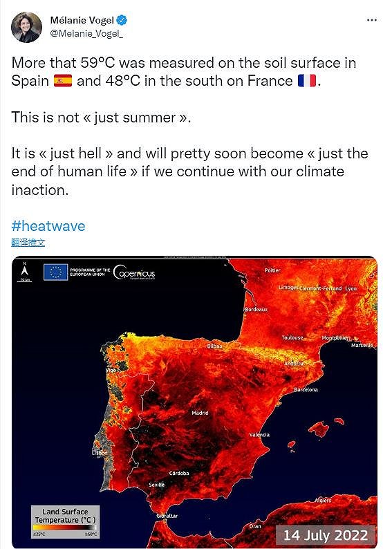 | 6月以来,从美国、西班牙到中国、日本,北半球多国遭遇了历史性高温。对于正因俄乌冲突和西方制裁陷入能源危机的欧洲而言,高温带来了更复杂的挑战。 本月,欧洲迎来今夏的第二波热浪。 葡萄牙部分地区气温超过46摄氏度,该国一周内就有238人因高温丧生。法国、西班牙、希腊等国爆发山火;英国于上周五宣布进入国家紧急状态并发布有史以来第一次极端高温红色预警。 高温之下,用电需求激增。欧洲本就面临天然气供应危机,高温干旱导致水力、风能等可再生能源发电量下降,让欧洲的能源问题雪上加霜。 极端高温 英国上周发布的史上首个极端高温红色预警是针对本周一和周二。 英国气象局警告,当地时间7月18日和19日,英格兰中部、北部、东部和东南部将遭遇极端高温,包括伦敦在内的部分地区气温或达40摄氏度。即便是夜间,城市地区也将出现高温。 ![]() 这也是英国首次发出40摄氏度预报。该国史上最高气温出现在2019年7月25日,剑桥大学植物园的38.7摄氏度。 欧洲的本轮热浪与北非-伊朗高压有关。本月初,利比亚、突尼斯等北非国家遭遇44摄氏度以上高温,随后热空气进入欧洲和亚洲。 但英国气象局同时指出,气候变化是英国极端高温天气增多的根本原因。与不受人类活动影响的自然气候条件相比,在目前的气候条件下,英国出现40摄氏度高温的可能性增加了10倍。 随着极端高温袭来,英国铁路网公司已经呼吁乘客周一和周二在非必要情况下不要坐火车出行。为防止铁轨在高温下膨胀,铁路网公司将部分铁轨临时漆成了白色,以反射更多光线。 卫生部门也发出警告,提醒老年人等脆弱人群做好防护措施。英国国家医疗服务体系官员还指出,很多医疗机构建筑老旧、空调和风扇配备不足,难以应对极端高温下大批患者就医。 英国卫生安全局则将热浪卫生安全预警提高到第四级,意味着不仅是高危人群,健康人群也可能因高温生病或死亡。 在英国发出预警之前,葡萄牙和西班牙已经有大批民众因高温丧生。 葡萄牙卫生部数据显示,从7月7日到13日,该国有238人因热浪丧生;西班牙统计显示,从10日到15日,高温造成至少360人死亡。上周四,葡萄牙北部皮尼昂(Pinhao)达到47摄氏度,打破当地7月最高气温纪录。 除了造成健康危害,极端高温还带来了经济损失。葡萄牙、西班牙、法国、希腊等国遭遇多场山火,法国西南部超过1.4万人紧急撤离。截至上周日,法国仍有三处山火未得到控制,过火面积近1.1万公顷。 法国议员沃格尔(Melanie Vogel)在Twitter发文,直接将今年的热浪称为“地狱”。 ![]() 能源危机加剧 欧洲各国中,意大利最先体会到极端高温对电力供应的影响。 正常情况下,水力发电提供了意大利15%的电力所需。但今年春季以来的持续少雨让意大利最长河流波河严重缩水。本月初,波河流域管理局统计显示波河的水量只有正常水平的六分之一,为历史最低。 意大利北部五个大区因干旱宣布进入紧急状态。随着高温袭来,北部超过170个市镇已经或者准备实施用水配额制度,禁止居民将水用于生活必需和医疗之外用途。 意大利公共供水服务特殊公司联合会发言人透露,今年前五个月,意大利的水力发电量比去年同期下降了40%。预计整个上半年,水力发电量仅为去年同期的一半。 意大利农民联合会预计,今年的高温干旱将让全国30%的农业生产和波河流域一半的畜牧业面临风险。 波河并非唯一干涸的主要河流。西欧第一大河莱茵河、西班牙最长的埃布罗河、瑞士和法国的隆河都出现不同程度的水位下降。莱茵河在德国科隆附近观测点的水位降至15年来最低。 目前西班牙的水力发电为20年来第二低,法国的水力发电降至10年来最低,葡萄牙上月的水力发电量仅为去年6月的四分之一。正常情况下,水力提供了欧盟所需电力的14%,排在天然气、核能和风能之后。 除了直接影响水力发电之外,河流水位下降也影响核电厂运转,核电厂需要大量水源对机组进行冷却。 上月,由于莱茵河水位下降,法国电力公司下调了圣阿尔邦核电厂产量并关闭了十多个反应堆。上周,该公司警告还有五个核电厂面临减产风险。 干旱伴随的风力减小也在影响德国的风力发电。上周二,德国的风力发电量不到3吉瓦;2月风力强劲时,德国风力发电量曾达到近50吉瓦。 在欧盟电力最依赖的天然气方面,俄罗斯对欧洲输气的主要管道“北溪1号”已经进入年度维护停运。德国能源巨头Uniper上周末宣布,由于俄罗斯供气减少、用气需求上升,公司已经开始动用库存供气。 为今年冬季做准备,欧盟正在努力补充天然气库存,以在11月1日前完成库存80%的目标。但如果“北溪1号”在完成维护后依然停止输气,欧盟将无法完成该目标,冬季供气将陷入危机。 为了在夏季减少天然气使用,欧洲多国已呼吁民众节约用电。 意大利禁止学校和其他公共场所将空调温度设置在25摄氏度以下;法国总统马克龙上周提议关闭夜间无用的公共照明;英国国家电网则在考虑为节约用电的企业提供补偿。 但对于欧洲的消费者而言,高额电费已经不可避免。由于风力供应减少,德国本周一基本负荷电价涨至410欧元/兆瓦时,比周五上涨23.1%。 上周二,法国的电价涨至4月3日以来最高,在欧洲电力交易所中现货交易价格达到432.43欧元/兆瓦时。去年5月,欧洲电力现货市场均价还处于两位数水平。 (文章来源:界面新闻) (责任编辑:admin) |