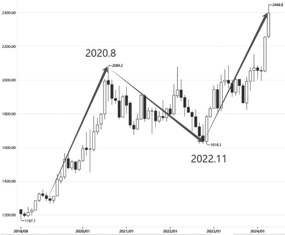 近期,贵金属市场的走势有点让人困惑。当前美国上调经济增长预期,其就业数据和通胀表现均指向美联储不急于降息。美联储官员甚至扬言有可能再次加息,降息的时点则一再向后推迟,美联储的“鹰派”立场已经显而易见。近1个月来,美元指数持续走强,截至4月11日已创近5个月新高。笔者认为,一般情况下,黄金价格和美元指数走势呈负相关性,此前美联储降息预期支持美元指数走强,从理论上说黄金、白银等贵金属价格应该存在下行压力。但目前的市场已经打破了这种规律,笔者认为投资者可以从以下两个方面进行思考,未来贵金属价格尤其是白银的价格仍然值得关注。 第一,黄金价格的走强已经酝酿很久。在近4年时间里,为了应对公共卫生事件、地缘政治冲突以及恶性通胀对经济的冲击,美国财政以及货币端“极度蛮横”地开始政策转向,造成了资产定价的大起大落。2020年美联储将利率“一撸到底”,极端量化宽松政策的实施,叠加由公共卫生事件引发的避险情绪,助推黄金、白银价格大幅上涨。2020年8月,国际黄金、白银价格创历史新高。但在之后的两年多时间里,受美国通胀数据大幅上行等因素支撑,黄金、白银的价格反而开启了振荡回调之旅。2022年年底,黄金、白银价格重新开启上升趋势,压抑了近3年的贵金属市场开始爆发,而且今年3月份以来涨势愈发猛烈。 从趋势上看,无论是从2023年贵金属价格从年初涨到年尾,还是从黄金、白银盘面价格的月线图运行节奏看,市场人士均基本认同今年贵金属价格的走强趋势。笔者认为目前贵金属市场演绎的是2021年以来的补涨行情。从盘面价格看,大周期贵金属市场的多头趋势仍在延续。