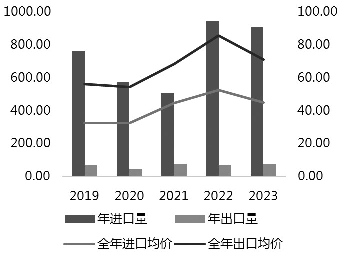 图为近5年中国原盐进出口情况(单位:万吨、美元/吨)