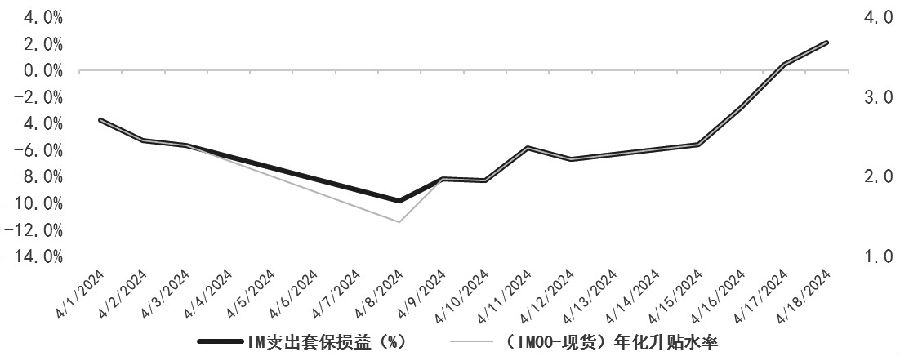 图为沪深300股指加权日线 我国3月的经济数据逐步公布,整体稳中向好。国家统计局公布的数据显示,初步核算,一季度国内生产总值296299亿元,按不变价格计算,同比增长5.3%,环比增长1.6%,高于市场预期。3月份规模以上工业增加值增长4.5%,较上月有所回落,从环比看,规模以上工业增加值比上月下降0.08%。不过3月份制造业采购经理指数为50.8%,回到临界点上方,比上月上升1.7个百分点,新订单和出口订单双双回到临界点上方,表明内外需求均有所改善。 一季度,社会消费品零售总额120327亿元,同比增长4.7%。3月份,社会消费品零售总额39020亿元,同比增长3.1%。其中,除汽车以外的消费品零售额34968亿元,增长3.9%。从数据上看,较年初有所回落。不过,接触类的餐饮收入13445亿元,增长10.8%。部分升级类商品销售较快增长,限额以上单位体育娱乐用品类、通讯器材类商品零售额分别增长14.2%、13.2%。此外,服务零售额同比增长10.0%。 一季度,全国固定资产投资(不含农户)100042亿元,同比增长4.5%,比上年全年加快1.5个百分点,已经连续3个月回升;扣除房地产开发投资,全国固定资产投资增长9.3%。分领域看,制造业投资增长9.9%,在工业生产保持较快增速、工业企业利润由负转正的情况下,企业效益持续改善。 4月以来,股指整体呈现权重支撑小盘回落的格局,这带来了品种间基差不同方向的变化。 IH和IF品种升水保持相对平稳,IC和IM品种贴水扩大。自4月1日以来,IF和IH品种当月合约升水程度相对平稳,IF当月合约年化升水率从4月1日1.59%上升至4月8日1.83%,IH当月合约年化升水率从4月1日2.28%回落至4月8日2.04%,而IC和IM品种当月合约贴水幅度明显增加,当月合约年化升水率分别从4月1日0.62%、-3.77%下降至4月8日-2.81%、-9.81%。当前IM品种贴水率保持在较高水平。 品种间展期损益变化有差异,IM品种最优展期合约以下月和下季月为主。4月1日以来,IF和IM当月合约最优展期合约年化展期成本率扩大,分别从4月1日-1.20%、-8.18%增加至4月8日-2.30%、-9.58%。4月1日以来IH和IC当月合约的最优展期合约年化展期成本率减小,分别从-0.10%、-4.44%减少至0.20%、-4.00%。当前对IC和IM两个品种展期成本保持在较高水平,短期仅有IH品种展期有正收益。 随着4月合约逐步到期,4个品种升贴水率自4月8日以来均逐步回归。截至4月17日,IH、IF、IC、IM当月合约年化升水率分别是1.45%、-0.40%、0.46%、0.40%,而远月合约受到行情影响,和当月合约间的价差波动仍然较大。