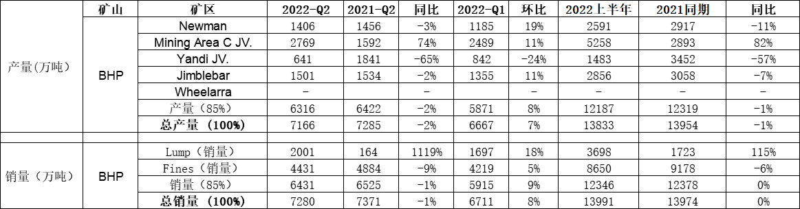 必和必拓2022年二季度铁矿石产量环比增加8%