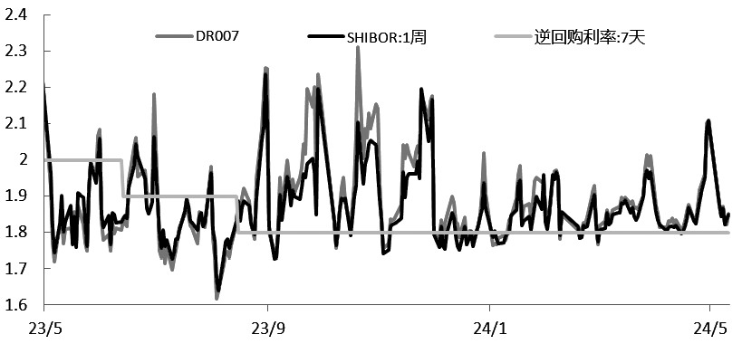 图为各品种7天利率走势(单位:%) 月初资金面转松。上周央行公开市场操作净回笼4400亿元。“DR007”和“SHIBOR:1周”分别为1.82%和1.83%,回落到政策利率附近,资金面转宽松。2024年第一季度中国货币政策执行报告指出,要保持货币政策的稳健性,增强宏观政策取向一致性,强化逆周期和跨周期调节,加大对实体经济支持力度,切实巩固和增强经济回升向好态势。把维护价格稳定、推动价格温和回升作为把握货币政策的重要考量,加强政策协调配合,保持物价在合理水平。预计央行将继续通过各种政策工具维持市场资金面的合理充裕。 政府债券供给将逐步加大。央行公布的4月份社融数据显示,当月政府债券减少984亿元,同比少增2127亿元,是2018年11月以来首次转负,1至4月合计净融资12600亿元,同比少增10241亿元。政府债券融资偏低是拖累社融增速的主要因素之一。2024年政府工作报告指出,积极的财政政策要适度加力、提质增效。今年国债、地方政府专项债和特别国债合计规模将达到8.96万亿元。财政部网站5月13日发布《2024年一般国债、超长期特别国债发行有关安排》,预计政府债券供给将逐步加大。 美联储主席鲍威尔表示,美国通胀仍高于2%的目标,降息的时间节点取决于数据,下一步行动不太可能是加息。美国4月非农就业人口增幅不及预期,失业率意外上升,薪资同比涨幅低于预期和前值,再加上5月密歇根大学消费者信心指数初值低于市场预期,10年期美债收益率回落至4.5%左右,中美国债利差有所收窄。 综上,4月份物价数据略超市场预期,但金融数据不及预期,市场“宽信用”进程受阻,昨日国债期货价格高开高走,财政部发布《2024年一般国债、超长期特别国债发行有关安排》后国债期货价格有所回落。各地继续优化地产政策,市场风险偏好提升,叠加超长期特别国债供给增加,预计长端期债市场价格波动将加大,建议暂时观望。不过,市场资金面保持合理充裕仍是大概率事件,美债收益率回落使国内货币政策空间加大,短端债市或偏强运行,关注跨品种套利策略。(作者单位:申银万国期货) (责任编辑:admin) |