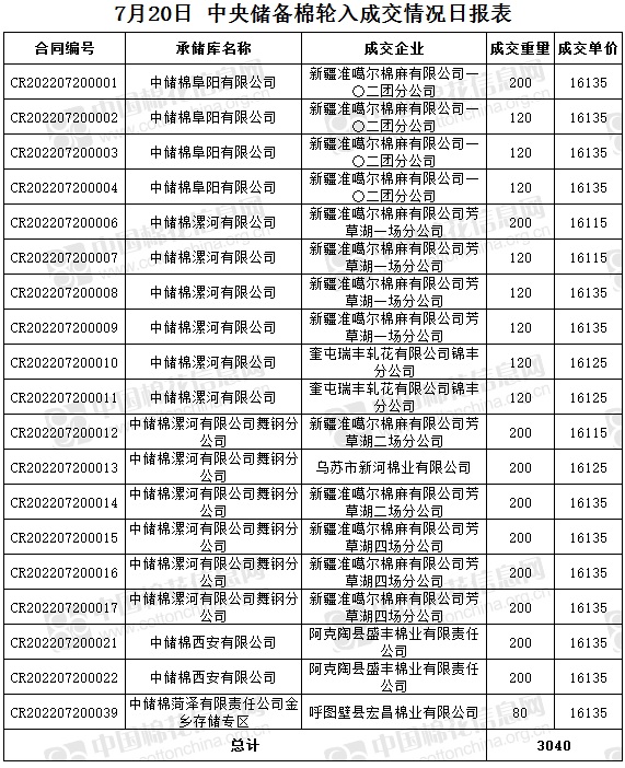中国棉花信息网 07月20日