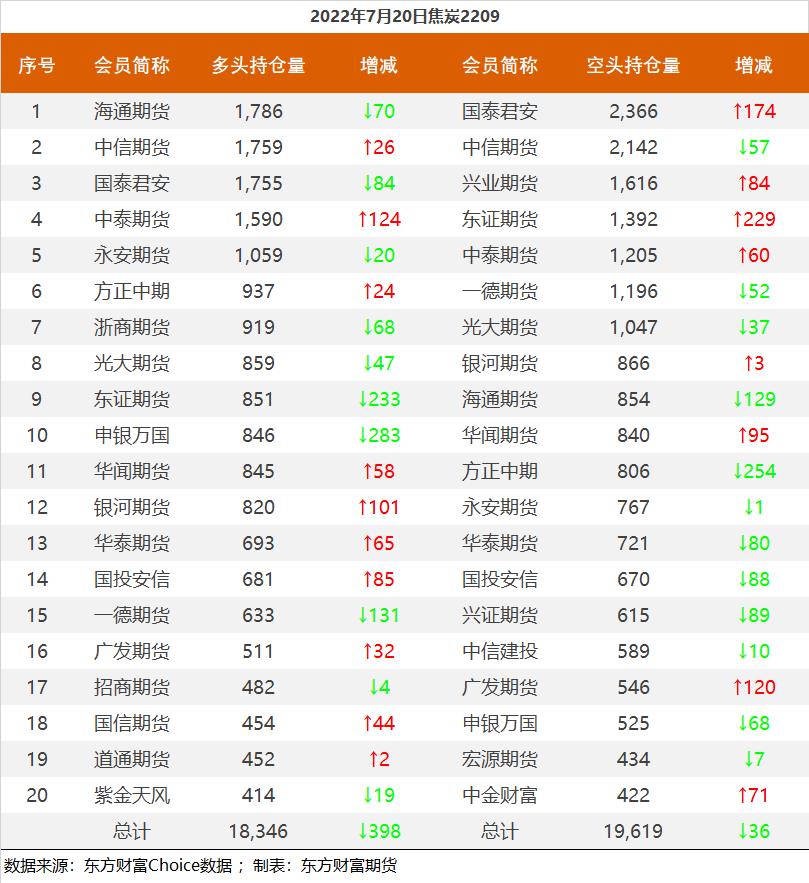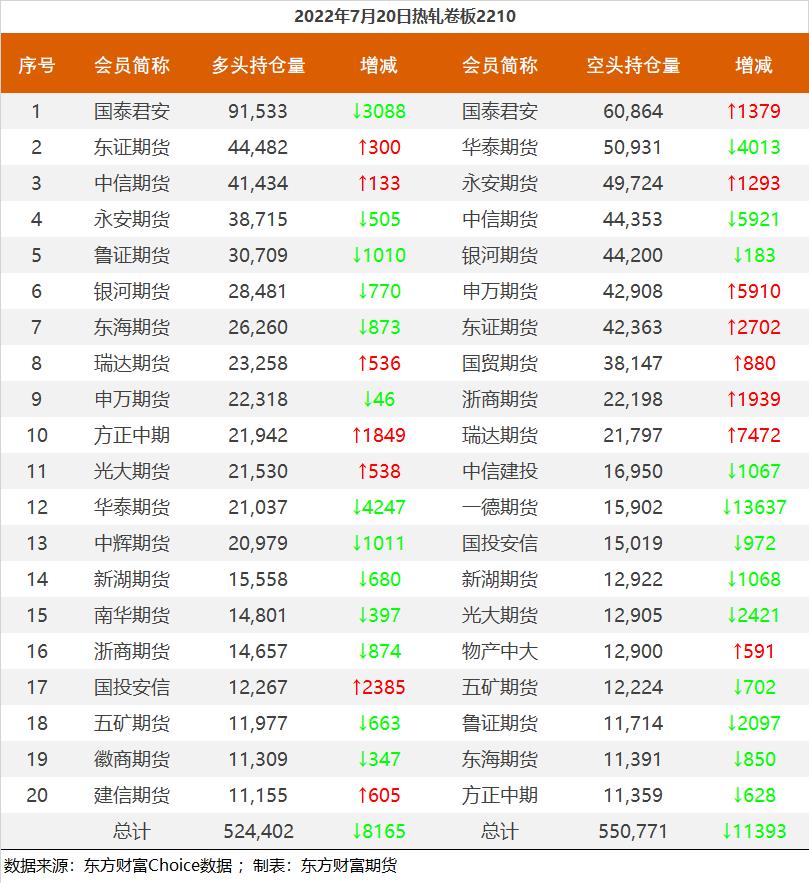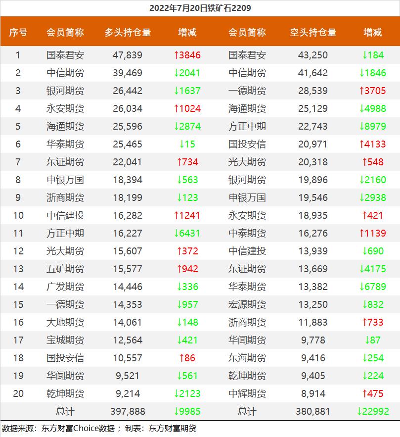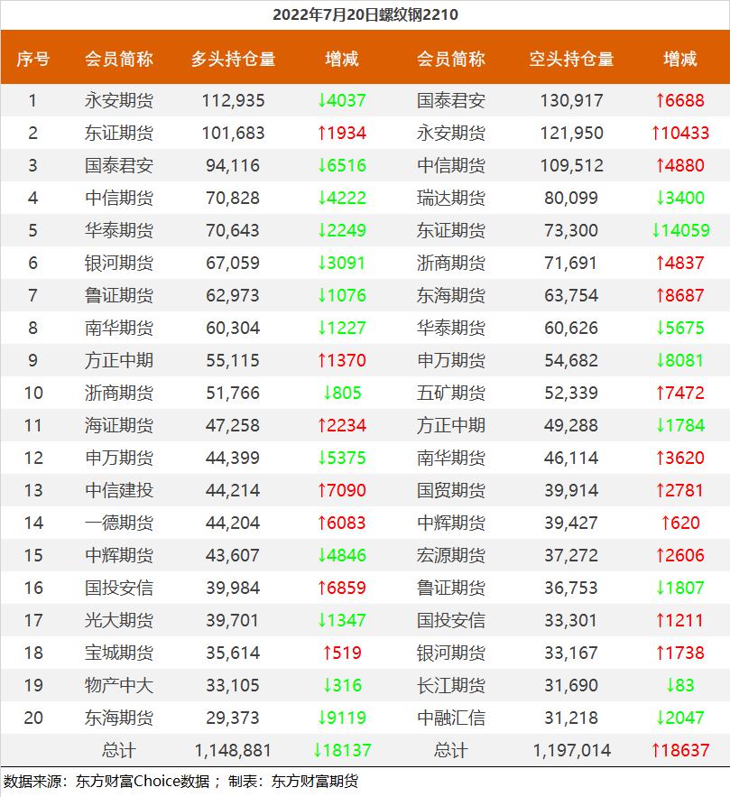 黑色持仓龙虎榜:焦煤跌6.65% 永安期货增持1万手螺纹钢空单 东方财富网 07月20日 截至7月19日收盘,螺纹钢2210收3830元/吨,涨0.42%;热卷2210收3821元/吨,涨0.55%;铁矿石2209收665.5元/吨,跌0.37%。 各品种具体如下: 各品种持仓情况具体如下: (责任编辑:admin)
