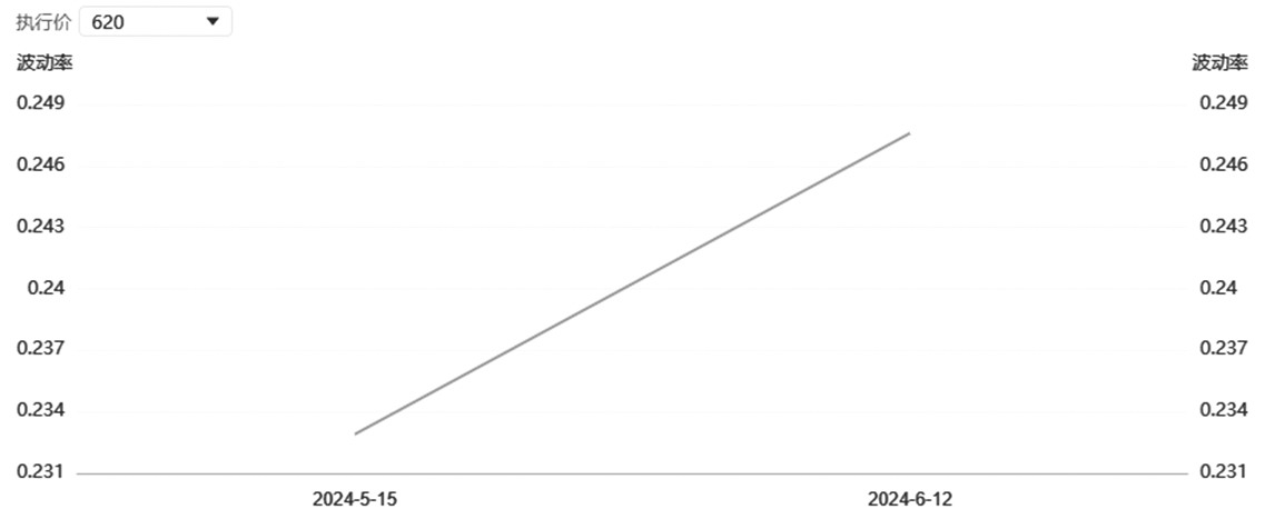 不同情况下 本文使用场内期权的历史数据,自主使用Python编写策略回测代码,根据历史数据中合成期货与期货间的价差关系制定套利规则开展策略回测,分析场内期权执行PCP套利策略的效果。 [A][期权套利策略] 所谓的套利策略,即通过发现市场错误定价,卖出价值较高的资产,买入价值较低的资产,待价差回归后离场,以期赚取无风险收益。期权套利策略包括波动率套利、波动率曲面套利、PCP套利等。PCP套利依据相同标的、相同执行价、相同到期日的看涨期权与看跌期权所构成的合成期货与标的资产之间的价差关系制定套利策略。 波动率套利 期权波动率套利策略指利用隐含波动率与历史波动率之间的差异进行交易。隐含波动率是将除波动率以外的期权定价模型涉及的变量值代入期权定价模型中,倒推出的当前期权价格对应的波动率。以常见的B—S—M模型为例,将当前期权价格、标的资产市场价格、期权合约执行价、剩余期限、无风险利率代入B—S—M模型,即可计算出合约当前时刻的隐含波动率。历史波动率指利用标的资产历史价格数据计算得到的波动率。 当隐含波动率低于历史波动率时,认为期权价格被低估,可买入期权;当隐含波动率高于历史波动率时,认为期权价格被高估,可卖出期权。隐含波动率多数情况下比市场实际波动率高,这种现象可看作是市场给予期权卖方即卖保险者的一种溢价补偿,因此实际开展波动率套利策略时,多为做空波动率操作。 波动率曲面套利 期权波动率曲面套利策略指利用不同期权合约间隐含波动率的差异进行交易。在某一时刻,某一标的资产不同剩余期限、不同执行价的期权合约的隐含波动率是不相等的,进而形成波动率微笑、波动率期限和波动率曲面。 波动率微笑是以某个品种某一到期日执行价不同的期权合约的隐含波动率绘制的曲线,因为通常实值和虚值期权的隐含波动率高于平值期权,因此绘制的波动率曲线形似微笑。根据图一以原油2407合约作为标的,到期日为2024年6月12日期权合约的波动率微笑曲线来看,同一标的相同到期日不同执行价的期权合约间的隐含波动率存在差异。 波动率期限是以某个品种相同执行价不同到期日合约的隐含波动率绘制的曲线。根据图二原油期权执行价为620,到期时间分别为2024年5月15日、2024年6月12日合约的波动率期限来看,到期日为2024年6月12日期权的隐含波动率更高。