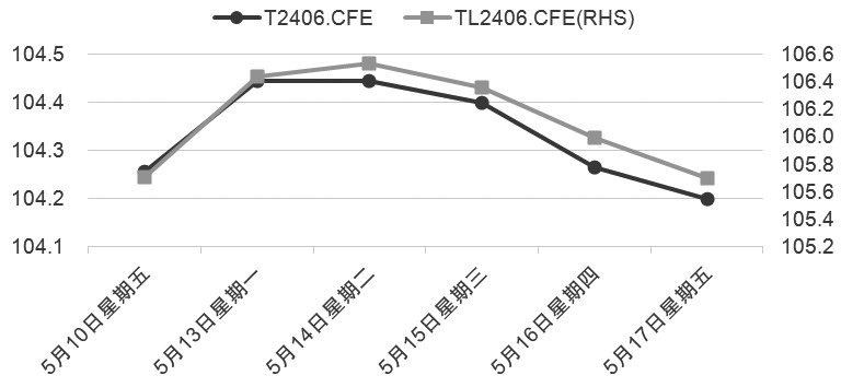 上周国债期货市场维持宽幅震荡格局,在风险资产走强及诸多利空消息影响下,债市并未出现太大的跌幅,甚至中短端合约较前一周出现小幅上涨。五一假期之后,国债期货市场利空消息增多,如各地房产限购措施不断优化、超长期特别国债开始发行等。近期诸多不确定性逐渐落地,10年期国债收益率小幅上行。