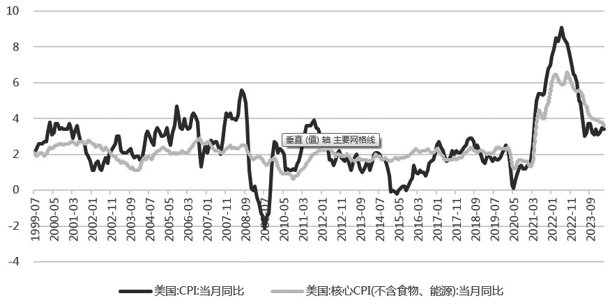 后期面临三大不确定性因素 历史数据显示,建筑业竣工周期显著领先不锈钢价格两个季度,说明地产周期的回暖有助于带动不锈钢需求,进而向上传导拉动镍的消费。因此,地产预期好转对镍价形成明显提振。 5月中旬过后,镍价加速上行,价格一度突破155000元/吨,创下年内新高。驱动本轮行情的主要因素是宏观面预期转向与供应端扰动,具体来看,宏观因素包括美联储降息预期走强及国内地产政策发力,而供应端扰动则是新喀里多尼亚社会性事件及印尼RKAB审批情况。 2024年4月美国CPI当月同比增3.4%,核心CPI同比增3.6%,相较3月份均有所回落。此前市场担忧美联储政策会转向鹰派,而4月通胀数据公布后预期明显修复,市场开始重新押注美联储政策会尽快转向宽松。在此背景下,有色板块呈现出贝塔共振上行的特征,镍价也因此受益。