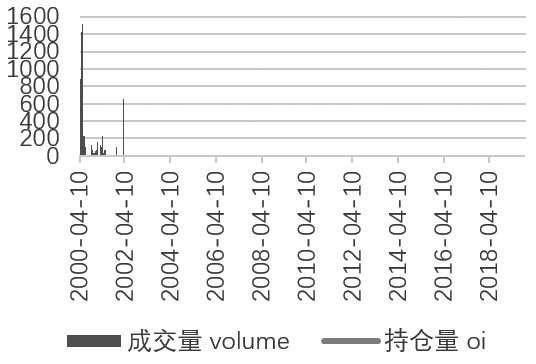 图为LMEX期货合约历史成交、持仓情况