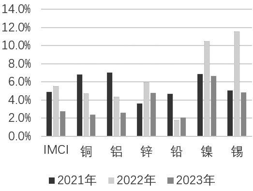 图为近三年各有色金属期货波动率