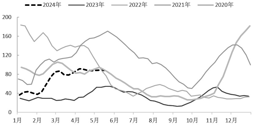 3月底以来,纯碱期货价格在检修规模扩大、宏观环境转暖等因素驱动下明显上行,SA2409合约最大涨幅接近39%,其间现货价格重心上移幅度低于期货。近期国内稳地产政策密集发布,纯碱行业检修规模有扩大预期,短期期价或延续震荡上行趋势。相对高位市场博弈加剧,纯碱价格波动或加剧,需重点关注库存边际变化和进口情况。 [供应压力减小] 3月底以来,纯碱期价整体维持震荡向上趋势,其核心驱动在于供应减量带来的供需边际好转。出于安全和习惯等考虑,国内纯碱企业通常会在气温高的夏季安排检修,检修时长普遍在7到15天,个别企业检修期长达1个月。2024年纯碱行业夏季检修呈现出明显的“开始时间早、检修相对分散”特征,使得纯碱价格波动幅度小于往年,但提供的价格支撑较强。 2023年国内纯碱产能增加约630万吨,并逐渐体现在2024年的产量中。受远兴能源等企业新产能释放影响,2024年3月纯碱周度产量升至74万吨左右,较实际需求(66万吨/周)过剩约12%。国家统计局数据显示,2024年1至3月国内纯碱产量为940万吨,同比增加22%。供应压力增大使得一季度纯碱价格大幅下跌,沙河重碱市场价一度下跌800元/吨,至2000元/吨。随着价格的持续下跌,尤其是接近部分企业生产成本,纯碱行业检修规模陆续增加。4月远兴能源等企业检修,纯碱周度产量下降至70万至71万吨,过剩状况明显缓解,4月初价格开始反弹。5月江苏实联、山东海化等企业陆续检修,纯碱供应短暂上升后再度下降,5月下旬周度产量再度降至70万吨附近。6月三友化工计划检修,纯碱产量增幅有限。综合装置检修、产能投放等因素,预计2024年纯碱产量将增加450万吨,至3700万吨。