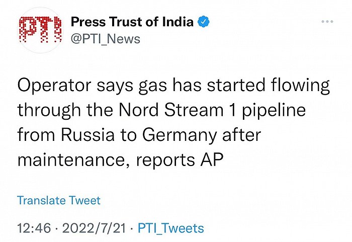 “北溪1号”管道已重启 开始输送天然气 界面新闻 07月21日 综合法新社、印度报业托拉斯7月21日消息,运营商表示,“北溪1号”天然气管道已于维修后重启,开始输送天然气。(文章来源:界面新闻) (责任编辑:admin)