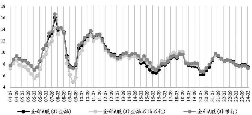 图为A股上市公司ROE(单位:%) 笔者认为,地产周期很难快速结束下行阶段,上市公司盈利弹性难在年内有效打开。从近期权益市场的表现来看,短期在稳地产政策快速释放情况下,微观看上海等地二手房市场热度尚未显性提高,买方市场特征未改,同时最近发布的5月份制造业PMI数据超预期回调,同样反映出国内有效需求不足的格局尚未显著改善。另外,从近期官方媒体消息以及央行领导表态来看,当前央行并不急于买债,甚至有可能在“长债不断高烧”的情况下出手卖债。 国内流动性不紧但股债切换速度较慢,海外流动性难以快速宽松。国内整体流动性环境并未显性收紧,尤其是银行间市场流动性尚且维持宽松态势,但是二季度股债切换速度偏慢,同样反映出国内经济基本面预期在地产尚未企稳背景下难以显性改善。可以看到,上半年债券基金发行热度仍处在高位,资产欠配逻辑持续演绎,债市收益率曲线维持牛平形态,信用利差处于绝对低位水平。