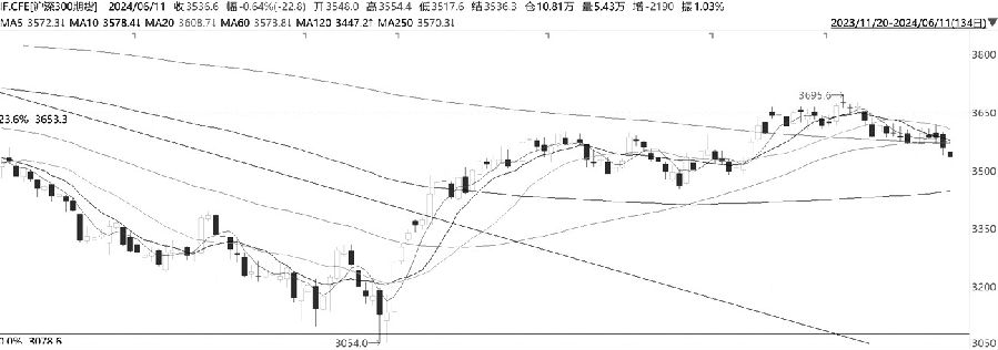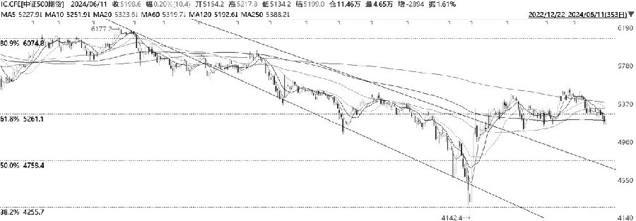 IF主力合约2月初以来接连突破60日均线和下跌通道上沿,走势转强。但近期,在黄金分割0.236对应的3650点的压力位受阻,转而回落。均线方面,短期均线下穿长期均线。指标方面,MACD指标、KDJ指标、RSI指标死叉后发散。量仓方面,IF下跌过程中伴随着减仓缩量,说明行情主要是多头获利了结所致。结合上述分析判断,IF指标走弱、量能下滑,弱势格局将延续。 IC 检验支撑