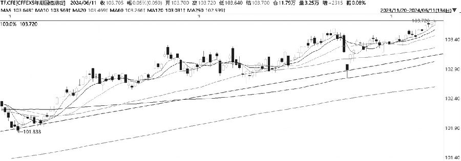 2018年以来,TF主力合约一直处于大的上涨周期,近期更是创出103.72的上市以来高点。均线方面,呈现多头排列。指标方面,MACD指标、KDJ指标、RSI指标金叉后发散。量能方面,TF的上涨伴随着增仓放量。结合上述分析判断,TF上涨趋势保持良好。(胡杨基金 陈志翔) (责任编辑:admin) |