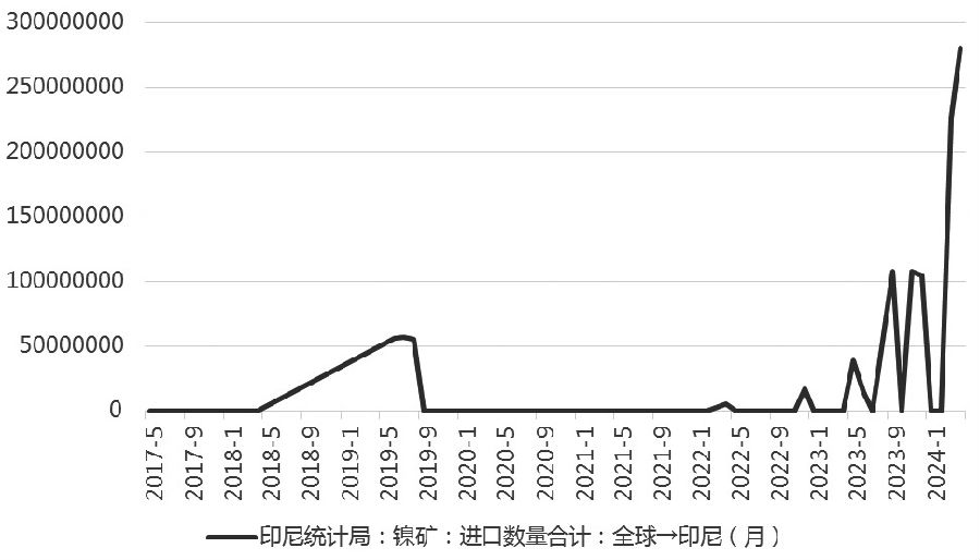 图为美国劳动力市场供需情况(单位:千人) 此外,作为全球最大镍储量国,印尼自2024年以来进口了大量镍矿。最新数据显示,2024年4月印尼进口镍矿28.07万吨,创历史新高,说明尽管印尼是镍矿生产大国,但其本国冶炼厂仍然面临镍矿供应不足的问题。市场预期,5月至6月,印尼的镍矿进口量将继续保持在较高水平。