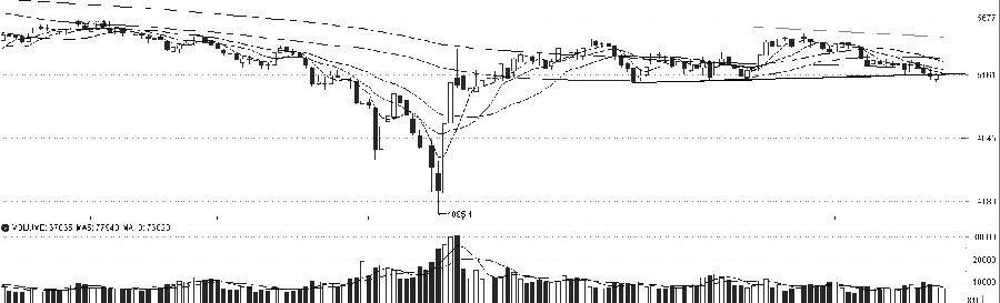 IF加权K线上录得5连阴,呈现持续回调之势。均线方面,MA5、MA10、MA20与MA60仍然向下,但MA120保持向上,成为重要的移动支撑线。指标方面,MACD绿柱扩大,继DIF跌破零轴后DEA紧随其后,表明IF加权短期处于弱势。整体分析,IF加权上有压力下有支撑,现货市场量能维持在低位,短期可能向MA120靠近,以寻支撑。 IC 均线向下