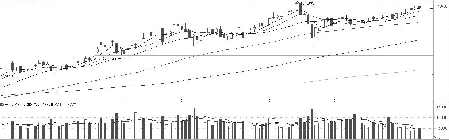 IC加权在3月27日与4月24日低点的连线处获得支撑。均线方面,MA5成为重要的移动压力线,且均线均向下。指标方面,MACD绿柱收窄,但DIF与DEA均在零轴之下。整体分析,IC加权上方受到多条均线压制,后市关注分型底的演化情况以及指标与均线的修复情况。 T 接近高点