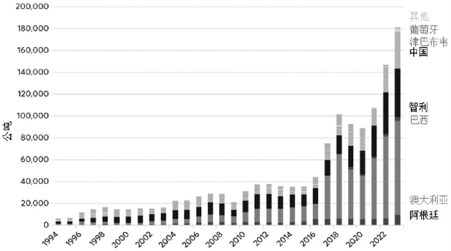 图为30年间钴矿供应量变化 总体而言,这解释了锂和钴价格的异常熊市,以及为何期货曲线虽然处于远期升水,但二者定价在未来12至18个月内都不会有太大的回升。
