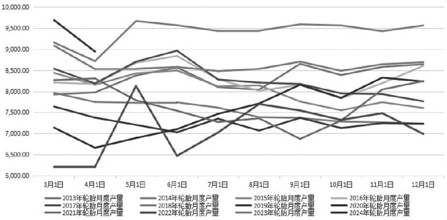 图为2018—2024年中国重卡销量(单位:辆) 累计来看,1—5月我国重卡汽车销售约43万辆,虽然较去年同期增长7%,不过增速却较1—4月有所下滑。导致重卡汽车销量增速下滑的原因,一是过去几年国内重卡汽车销量增速较快,基数较高,导致今年销量增速出现下滑;二是国内房地产持续低迷,虽然有扶持政策出台,但尚未出现大幅扭转迹象,导致地产衍生行业依然疲弱,重卡增量需求较低,只能依靠存量更新来支撑销量。在重卡销量增速下滑的拖累下,沪胶期货缺乏需求驱动助力。 [2024年以来国内轮胎产量大幅增长] 2024年以来,随着行业景气度持续攀升,国内轮胎企业产销两旺。国家统计局的最新数据显示,4月我国橡胶轮胎外胎产量为8944.9万条,同比增长5.2%;1—4月我国橡胶轮胎外胎产量累计为33779.4万条,同比增长11.4%。这一增长趋势与国内外市场需求的回暖密不可分。尤其是半钢轮胎,产量持续上升,4月我国半钢轮胎产量达到5742万条,环比增加0.14%,同比增加5.01%。然而,全钢轮胎市场表现稍显逊色,4月产量为1351万条,环比下跌5.79%,同比下跌3.71%。 出口方面,据统计,1—4月,我国橡胶轮胎出口量达到286万吨,较去年同期增长5.6%。同时,出口金额也呈现出稳步增长的态势,达到506亿元,同比增长7.1%。随着二季度逐渐进入出口旺季,预计我国半钢轮胎出口将继续保持增长趋势,有望对二季度轮胎行业整体销量提供较大支撑,甚至可能超过去年同期水平。