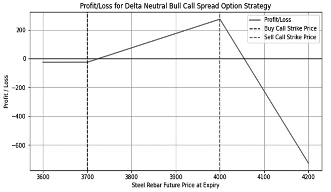 图3为熊市认沽比例价差策略的到期盈亏结构 [实验设置] 实验数据来源 在本研究中,我们选择了2024年3月8日至22日期间螺纹钢期权5月合约的市场数据作为实验对象,这一选择基于以下三个理由:首先,螺纹钢期货5月合约是市场上的主力合约,与之相关的螺纹钢期权也是成交量最大的期权合约。其次,在这段时间内,螺纹钢5月合约的价格经历了一个明显的V形反转走势,从3691点的高位下跌至3513点的低位,随后又反弹至3612点,这一过程仅在15个交易日内完成。最后,与这一价格走势相匹配的是波动率的变化趋势,螺纹钢的VIX指数在初期从15.51上升至23.38,之后又下降至16.72,表明在价格趋势下跌过程中市场波动率呈现上涨态势,而在价格趋势反转上涨时波动率则出现下跌。这些特点使得所选时间段内的数据成为研究期权交易策略的理想样本。 策略参数