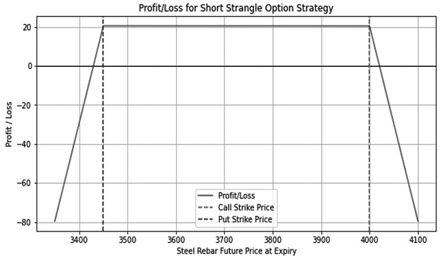 实际应用中可采用认沽熊市反向比例价差策略与双卖平值认沽策略相结合的方式 本文探讨如何在牛市和熊市中安全运用螺纹钢期权波动率策略,并提出5种应对策略。通过对2024年3月的15个交易日的实验数据进行分析,发现在风险相同的条件下,对于波动率上升且价格下跌的情况,建议采用卖虚值认购期权加卖平值认沽期权的双卖策略;而在波动率下降且价格上涨的情况下,建议采用牛市比例价差策略。 [策略介绍] 螺纹钢期货和期权是上海期货交易所的重要交易品种,根据2023年的数据,螺纹钢期货以日均约205.75万手的成交量排在该交易所成交榜的前三名;与此同时,螺纹钢期权的交易量也占据领先位置,以2024年4月1日这一交易活跃日为例,螺纹钢期权的成交量达到了363,031手,而同一日螺纹钢期货的成交量则高达3,133,799手。相较而言,在2024年4月29日这一相对平稳的交易日,螺纹钢期权的成交量为66,838手,期货的成交量则为1,622,792手。在螺纹钢期权的交易策略中,波动率交易扮演着至关重要的角色。然而,在明显的趋势性市场条件下,这种策略却面临着较高的风险。本文聚焦于如何在趋势市场中安全地进行波动率交易,详细分析了5种不同的波动率策略在此类市场情况下的表现,并提出了一种创新的组合策略,旨在协助交易者安全地应对牛市和熊市的波动。 本文全面深入地介绍了5种核心期权交易策略,包括卖虚值认购期权加卖虚值认沽期权策略(下称双卖)、卖虚值认购期权加卖平值认沽期权策略(下称双卖平值沽)、卖虚值认沽期权与卖平值认购期权策略(下称双卖平值购)、认购牛市比例价差策略(下称牛市比例)以及认沽熊市比例价差策略(下称熊市比例)。这些策略有两个共同的关键特点:第一,它们都是市场中性策略,目的是利用市场波动率涨跌盈利,而非依赖于价格朝某一特定方向移动盈亏;第二,这些策略都采用了空gamma的方式,主要通过波动率的下降和时间价值的流逝来获取利润。 双卖策略 双卖宽跨式期权策略,又称为Short Strangle,是一种同时卖出同一标的资产的认购期权和认沽期权的策略。这两种期权具有相同的到期日,但执行价格不同。这种策略通常在市场预期波动较小的情况下使用,因为它允许标的资产价格在更大范围内波动,而不会触发期权的行权,从而增加策略成功的可能性。然而,这种策略的主要缺点是,如果市场出现剧烈波动,超出了预设的价格区间,可能会导致无限的潜在亏损。因此,尽管双卖宽跨式期权策略有一定的吸引力,但风险管理和对市场波动性的准确评估是至关重要的。图1展示了该策略的盈亏结构图,清晰地说明了其潜在的收益和风险。