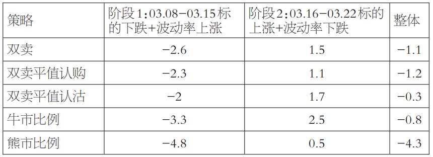 表2为5个策略的整体盈亏表现 通过综合分析图4、图5和表2的数据,我们可以得出以下结论: 第一,双卖平值沽策略在整体表现上排名第一,仅亏损0.3万元。这主要得益于其在下跌过程中表现出色,亏损较少,仅为2万元,在所有策略中排名第一。而在上涨过程中,该策略依然表现良好,盈利1.7万元,排名第二。 第二,牛市比例策略整体排名第二,亏损0.8万元。虽然该策略在下跌过程中表现一般,亏损3.3万元,在5个策略中排名第四,但在上涨过程中,其表现最为突出,盈利2.5万元,位居第一。值得一提的是,牛市比例价差策略特别适用于标的资产上涨,同时市场波动率下降的行情。 第三,双卖策略整体排名第三,亏损1.1万元。具体来看,该策略在下跌过程中排名第三,亏损2.6万元;在上涨过程中同样排名第三,盈利1.5万元。 第四,双卖平值购策略整体排名第四,亏损1.2万元。在下跌过程中,该策略表现相对较好,亏损仅为2.3万元,排名第二;而在上涨过程中,该策略排名第三,盈利1.1万元。 第五,熊市比例策略整体排名第五,亏损4.3万元。无论是在下跌过程还是上涨过程中,该策略均表现不佳。在下跌过程中,其亏损高达4.8万元,在所有策略中排名垫底;而在上涨过程中,该策略盈利0.5万元,同样排名第五。 讨论 本部分主要从理论视角上讨论以下三个问题: 问题一是为何双卖平值沽策略在标的资产下跌且波动率上涨的过程中表现最佳。 该策略在下跌过程中表现最佳,主要是由策略本身的特点所决定的。为了维持delta中性,该策略的虚值认购期权持仓手数远多于平值认沽期权。在标的资产下跌且波动率上涨的过程中,这些虚值认购期权的方向判断正确,因此获得了小幅盈利。尽管平值认沽期权的方向判断错误,但其整体的gamma敞口远小于虚值认购期权,因此亏损相对较小。综上所述,持有大量虚值认购期权和少量平值认沽期权的组合,保证了该策略在下跌过程中具有明显优势。 值得一提的是,该策略在标的资产上涨且波动率下跌的过程中表现也相当不错,在5个策略中排名第二。这同样是由于该策略不平衡的gamma敞口结构所致。在上涨过程中,平值认沽期权开始在delta方面实现盈利,而大量的虚值认购期权则主要在波动率下跌过程中获利。 问题二是为何牛市比例策略在标的资产上涨且波动率下跌的过程中表现最佳。 牛市比例策略在标的资产上涨且波动率下跌的过程中表现最佳,这主要是由策略本身的特点所决定的。该策略中的买认购部位在标的资产上涨过程中获得了大量的delta收益。在gamma敞口相同的条件下,该策略的卖认购部位要远远大于其他4个策略,在偏度和波动率下跌的双重效应下,卖认购部位赚取了可观的vega收益。总的来说,牛市比例策略中的买认购部位赚取了方向性收益,而卖认购部位则获得了波动率下跌带来的收益,因此该策略整体表现最佳。 然而,需要注意的是,该策略在标的资产下跌且波动率上涨的环境下表现并不理想,在5个策略中排名第四。这主要有以下两方面原因:一是虚值的卖认购部位在波动率上涨的过程中,并没有很好地对冲标的资产下跌带来的损失;二是策略中每日的调仓操作,导致买认购部位不断产生新的亏损。 问题三是哪种策略组合是最佳的策略。 在标的资产下跌且波动率上涨的过程中采用双卖平值沽策略,而在标的资产上涨且波动率下跌的过程中采用牛市比例策略,这种组合可以被视为安全地从熊市过渡到牛市的最佳策略。这5个策略都属于空头波动率策略,在波动率上涨阶段,它们都会遭受一定程度的亏损,因此这个阶段的主要目标是尽可能减少损失,而双卖平值沽策略在这方面表现最佳。在市场从熊市转向牛市的过程中,波动率通常会出现均值回归现象,此时这5个策略都有望获得大幅度盈利,而牛市比例策略则是在这一阶段赚取收益的最佳代表。 通过对以上分析的综合考虑,我们可以得出以下结论: 第一,如果以盈利为核心目标,那么在市场下跌过程中采用双卖平值沽策略,而在市场上涨过程中采用牛市比例策略,将是一个理想的选择。然而,这个策略的主要问题在于需要准确判断标的资产是处于下跌趋势还是上涨趋势,这对投资者的市场判断能力提出了较高要求。 第二,如果以策略的简单可执行性为核心目标,同时考虑到控制投资组合净值的回撤,那么仅采用双卖平值沽策略也是一个不错的选择。该策略操作简单,且在不同市场环境下都能提供相对稳健的表现。 第三,认沽熊市反向比例价差策略是熊市比例策略的反向操作,属于正gamma策略。这个策略在标的资产下跌且波动率上涨的过程中可以获得较大盈利,从而弥补双卖平值沽策略的亏损。而在标的资产上涨且波动率下跌的过程中,双卖平值沽策略开始盈利,可以有效弥补认沽熊市反向比例价差策略的亏损。通过这两个策略的联合使用,可以在不同市场环境下实现风险对冲,提高投资组合的整体表现。 [结论] 本文针对螺纹钢期权市场中,如何利用波动率中性策略顺利度过波动率快速上升和下降阶段这一问题展开了深入讨论,重点分析了5种常用的波动率中性策略在一个完整的波动率周期中的表现,并利用2024年3月的15个交易日数据进行了实证研究。研究结果发现:在标的资产下跌且波动率上升的市场环境中,双卖平值认沽策略的表现最为出色;而在标的资产上涨且波动率下降的行情中,牛市比例策略则展现出