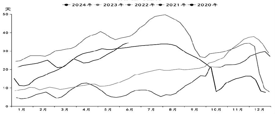 图为纺企棉纱库存(单位:天) 综上所述,一方面,美国农业部6月供需报告表现平平,2024/2025年度全球供给增加压力较大;另一方面,国内需求持续偏弱,虽然2023/2024年度有一定幅度的减产,但仍处于高位。整体上,棉花难有强势表现,操作上,暂时观望或逢反弹做空为主。(作者单位:国投安信期货) (责任编辑:admin) |