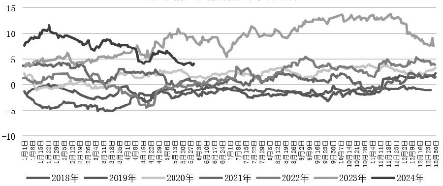 图为巴西南部双周产糖量(单位:万吨) 从5月下半月的数据来看,在初期天气干燥适合压榨以及开机时间较上榨季提前的情况下,双周产糖量较上个榨季同期降低20万吨。市场对巴西中南部2024/2025榨季甘蔗产量的核心预估区间在4100万~4300万吨,制糖比接近技术极限的51%~52%,高产量被单产和高制糖比支撑。如果榨季后期干旱无法改善,甘蔗质量下降,并且乙醇销售火热使糖厂没有更高的制糖意愿,巴西存在产量不及预期的可能性,因此需要对降水量以及影响制糖比的糖醇溢价多加关注。 从降水情况来看,5月巴西南部持续干旱。根据天气跟踪数据,截至5月底,巴西南部累计降水量为400mm,仅与2021年基本持平,仍低于往年正常水平的600mm。在天气更差的2021/2022榨季,偏干天气使前期糖产量偏高,后期干旱持续使产量快速下滑,并在2022年1月底就提前收榨,而往年收榨时间基本在2月底或3月初,最终产量为3206.4万吨,同比减少约640万吨。2024/2025榨季巴西南部甘蔗平均蔗龄高于2021/2022榨季,持续性干旱对甘蔗产糖的影响更大。 糖醇比是糖厂对甘蔗进行压榨之后,用于生产糖和乙醇的比例,主要受到糖价和乙醇折糖价之间的利润驱动。截至6月15日,巴西醇油比为65.55%,乙醇价格较油价仍然偏低;巴西乙醇折糖价小幅回落至14美分/磅,糖醇溢价由年初的10美分/磅下滑至4美分/磅。4月乙醇销售火热,销量为28.5亿升,同比提高35.75%,其中,无水乙醇销量为9.2759亿升,同比提高6.32%;含水乙醇销量为19.2亿升,同比提高56.65%。如果乙醇需求维持在目前水平,价格保持上行,糖醇溢价继续下滑,甚至收窄至出现负利润,糖厂制糖意愿恐有下调。