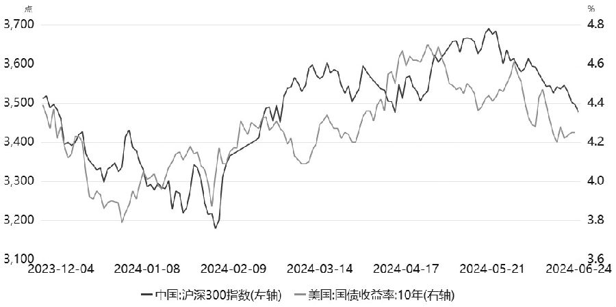 图为规模指数上半年走势 上半年A股市场上涨驱动不强,整体表现为利好入场则上涨,利好消化之后则继续震荡修正。笔者认为,上半年股市上行缺乏持续性的原因主要有三点:一是国内经济基本面维持温和复苏态势,这是限制股市持续上行的主要原因。从经济数据看,上半年国内五大需求中仅制造业和出口表现具有一定的亮点,再结合房地产、社会消费品零售总额以及基建的表现看,经济预期并没有出现明显回升。从三部门发力情况看,政府发力为主,居民、企业消费、投资意愿仍待提升,经济增长内生动能不强,所以股市对政策的期待较高,因此表现为政策入场时股市上行,政策效应减弱后,若经济状况未出现明显改善,股市则开始回调。二是美联储货币政策整体偏“鹰”,年内降息次数明显下降。年初美联储降息预期为年内降息6次,共降息150个基点,但由于美国经济数据整体超市场预期,通胀数据并未如预期持续回落至目标水平,使得降息预期不断回落。截至6月底,美联储年内降息次数降至一次。在美联储降息预期回落、美债收益率不断攀升的情况下,A股消化国内政策利好后,在外围压力影响下回落。三是国内交易情绪偏谨慎,市场风险偏好偏低。由于国内经济基本面维持温和复苏态势,外围压力不减,市场交投热情不高,上半年两市成交额回调至低位。同时,从股指衍生品来看,股指期货升贴水以及股指期权隐含波动率均降至历史低位,说明市场情绪仍待提振,资金入场积极性不高。