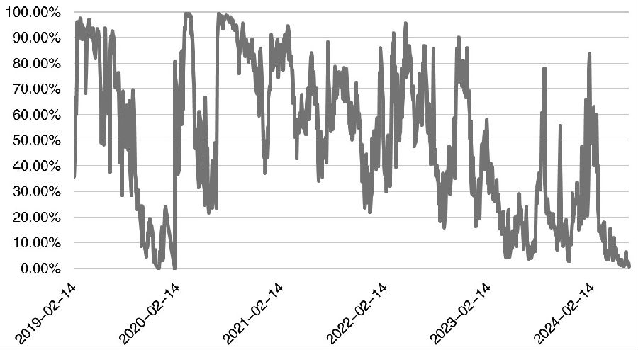 图为上证50ETF期权隐含波动率所处历史分位 综上,尽管近期受陆家嘴论坛上资本市场政策落空以及降息预期落空影响,A股市场出现回调,上证指数再度跌破3000点,但结合上半年整体影响股市的因素看,大方向上利空正在逐步淡化,A股市场正等待一个契机破而后立。后续需继续关注政策面的调整及其带来的经济预期、经济数据的变化。笔者认为,下半年股市机会大于风险,随着股市的持续下跌,做多机会正在逐步显现。从期指品种选择上看,由于新“国九条”出台后,整体强监管环境下,中小盘股压力更大,而且后续股市向好大概率是交易经济复苏,所以建议以对应大盘指数的IH、IF为主。在市场情绪明显好转之前,整体仓位不要过大,可建立部分底仓的同时做好风险管理,在持有部分多单的同时买入看跌期权避险,或采用备兑策略、领口策略等指数增强策略。对风险规避型投资者来说,如果要布局多单,又怕短期风险较大,可以逢低在期权市场上买入看涨期权,锁定最大损失,同时避免踏空。(作者单位:南华期货) (责任编辑:admin) |
