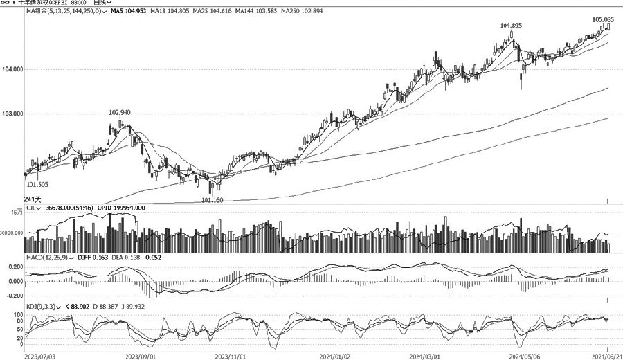 近期T加权仍保持强势,不过量仓等指标趋同性待提升。周一早盘略波动后震荡上行,至尾盘均表现强势。T主连合约加仓较多,远月合约小幅增仓,使得总体仓位增加较多,不过成交量能较前几个交易日明显缩减。T加权MACD红柱延续,KDJ快线在中高位运行,日K线获短期均线支撑,即将突破前高位置,总体表现为缩量增仓上涨,关注日K线创新高后的回踩幅度,建议多单持有。(田瑞 期货投资咨询证编号TZ008852) (责任编辑:admin) |