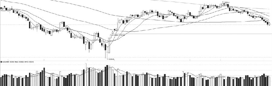 IF加权在K线图上结束了6连阴,并在近一周首现阳线。均线方面,MA5仍然向下,与MA10、MA20与MA60形成空头排列,MA5依然是重要的移动压力线。指标方面,MACD绿柱收窄,而DIF与DEA均在零轴之下。综合分析,IF加权本周跌破MA120后持续回落并寻求支撑,后市关注日线级别分型底出现情况。 IC 呈底背离
