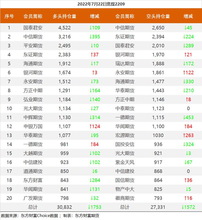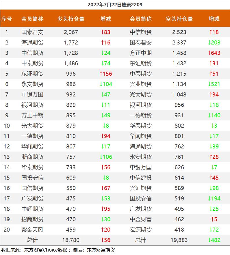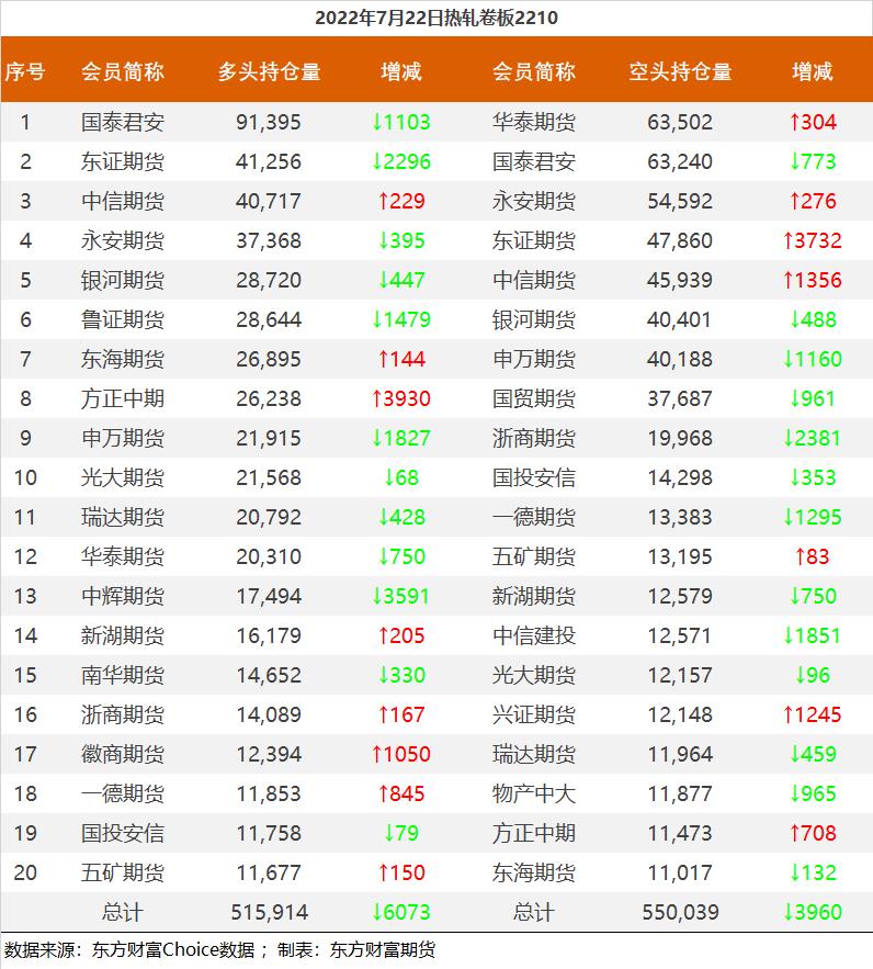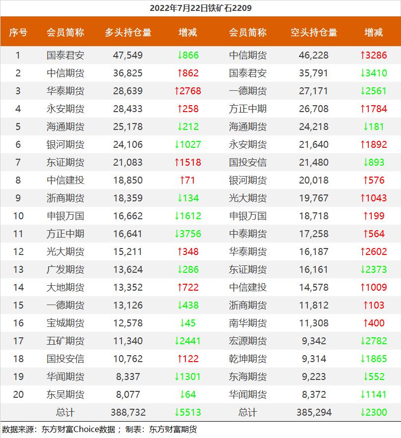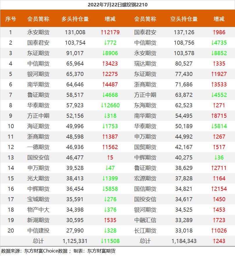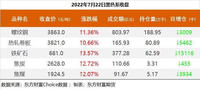 黑色持仓龙虎榜:铁矿石涨3.57% 永安期货增持1.2万手螺纹多单 东方财富网 07月22日 截至7月22日收盘,螺纹钢2210收3863元/吨,涨1.36%;热卷2210收3821元/吨,涨0.66%;铁矿石2209收681元/吨,涨3.57%;焦炭2209收2628元/吨,涨2.72%;焦煤2209收1924.5元/吨,涨2.07%。 各品种具体如下: 各品种持仓情况具体如下: (责任编辑:admin)