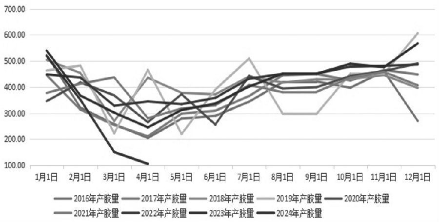[宏观氛围转空背景下胶价受影响 ] 美国制造业意外下滑引发市场对大宗商品需求减弱的担忧,同时美国通胀数据反弹也弱化未来美联储降息的预期。美国劳工部公布的数据显示,作为左右降息预期的关键数据之一,美国5月CPI同比上涨3.3%,与3月的3.5%和4月的3.4%相比有所回落;美国5月核心CPI同比增3.4%,与3月的3.8%和4月的3.5%相比有所回落。与此同时,美国5月生产者价格指数(PPI)同比上涨了2.2%,进一步证明通胀压力依然存在。 受此影响,美联储在6月的议息会议中释放偏鹰派基调,通胀已经实质性地放缓,但仍然太高,今年迄今的通胀数据还不足以给美联储降息的信心。同时美联储6月“点阵图”显示,预计2024年仅降息一次,相比3月预测减少2次。此外,近期美债利率出现反弹,主要原因在于部分美联储官员表态继续偏鹰。在美债利率的带动下,美元指数也出现上行,海外风险资产再度承压。随着美联储降息预期减弱,宏观氛围转向中性偏空,从而对沪胶期货价格形成负面影响。 [东南亚减产长周期逻辑依然存在] 天然橡胶树容易受到干旱因素的干扰而诱发减产。近两年来,全球厄尔尼诺现象凸显导致今年4—5月东南亚天然橡胶产区遭遇旱情,从而导致产胶国胶水产量明显下滑。与此同时,由于2015—2018年胶价低迷引发主要产胶国对新胶树种植投入量偏低,因此2023年以来全球总产胶量出现下滑,供应端进入减产周期。据天胶生产国协会(ANRPC)发布的报告,4月ANRPC成员国合计产胶量达54.97万吨,环比小幅回落1.34万吨,同比也显著下滑17.83万吨;1—4月,ANRPC成员国累计产胶量达293.3万吨,较去年同期的343.59万吨大幅下滑50.29万吨,降幅达14.64%。 由于受异常气候影响,全球最大天然橡胶生产国——泰国新胶释放不及预期。据统计,2024年4月泰国产胶量达10.49万吨,环比小幅下降4.54万吨,同比显著回落14.04万吨;1—4月,泰国产胶量合计达112.6万吨,同比下降32.82万吨;出口方面,2024年至今泰国天然橡胶月度出口量基本处于近5年低位水平。据统计,4月泰国天然橡胶出口量达32.28万吨,环比小幅下降6.82万吨,同比略微下滑0.22万吨;1—4月,泰国合计出口137.13万吨,同比下降15.27万吨。 目前来看,东南亚气候因素以及长周期适龄割胶面积下滑且短期难以弥补成为天然橡胶减产长逻辑的主要因素。由于天然橡胶树种植周期漫长,幼龄期一般在6至7年,主要产胶国胶树老龄化又加剧,这导致未来较长时间内,胶市供应偏紧格局会长期存在。