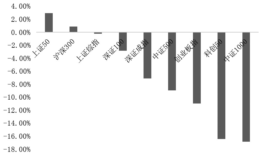 图为A股上半年主要指数涨跌幅(%)