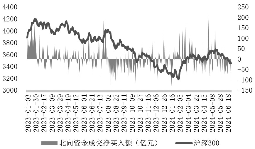 图为沪深300与北向资金 基本面:经济温和复苏,盈利有望修复 2024年年初以来,我国经济发展呈现出一些积极变化,一季度GDP同比增长5.3%,好于市场预期,出口表现亮眼,但结构性问题依然存在,比如供给端的修复好于需求端、有效需求相对不足、微观主体盈利偏弱等。从5月经济金融数据来看,国内经济延续温和复苏态势,但持续修复仍需稳增长政策支持。下半年需着重关注全球主要经济体增长环境、贸易政策以及地缘局势等因素对我国出口的影响。 6月25日,国务院总理李强在大连2024年夏季达沃斯论坛开幕式致辞中指出,“今年以来中国经济保持回升向好态势,一季度同比增长5.3%,实现良好开局,二季度继续稳中向好,我们有信心、有能力实现全年5%左右的增长目标。”在此背景下,展望下半年,随着物价因素边际改善(4月和5月PPI数据降幅收窄)和国内经济复苏的深化,A股企业盈利有望稳步修复,回归正增长。 政策面:稳增长基调未变,节奏影响预期 宏观政策方面,在经济温和复苏、内需有待进一步改善的背景下,下半年财政政策与货币政策如何协同发力是引导市场预期的关键。若财政政策能够继续加力,叠加外部降息配合下国内货币宽松空间打开,则有助于强复苏预期的升温。产业政策方面,虽然地产行业并不是经济发展的全部,但其涉及的行业较为广泛、与金融市场联系较为密切,因此相关政策的落地力度和实施效果对市场信心的稳定起到了至关重要的作用。 财政政策方面,当前国内经济依然处于温和复苏阶段,市场亟待财政进一步发力。考虑到超长期特别国债已经发行,下半年建议投资者关注财政政策在新质生产力、设备更新和以旧换新、地产等方面可能出台的支持措施。但由于非税收入减少,预计下半年财政政策总量宽松的空间也较为有限。货币政策方面,在我国经济内生增长动能仍待提升的背景下,货币仍有放松空间,但时点上可能需要等待人民币汇率压力减轻后,大概率在美国降息时点明确后。 4月底以来,多地先后出台优化房地产市场政策措施。5月17日,央行宣布取消全国层面首套住房和二套住房商业性个人住房贷款利率政策下限、下调个人住房公积金贷款利率0.25个百分点、调整个人住房贷款最低首付款比例和设立3000亿元保障性住房再贷款。6月13日,央行召开保障性住房再贷款工作推进会,推动政策落地见效,加快存量商品房去库存,加强制度保障和内外部监督。从5月下旬以来申万一级行业地产板块走势来看,相较于政策,市场更为关注地产数据能否有实质性的改善。目前地产对经济和市场信心的影响较大,不排除政府继续出台地产利好政策的可能性。 海外因素:不确定性增强,外资双向波动 展望下半年,外部不确定性较上半年而言有增无减,美联储货币政策的取向及全球地缘政治局势的变化将成为影响市场风险偏好的关键外因。今年以来,美联储降息预期不断出现“折返跑”,何时开启降息对全球资产配置节奏来说较为关键。若下半年美国能够开启降息周期,则北向资金外流的压力将减缓。此外,当前全球地缘局势复杂,下半年美国大选的关注度将显著抬升。 回顾6月,尽管加拿大、欧洲央行先后开启降息周期,引发了全球“降息潮”来临的预期,但美联储的表态偏向鹰派,鲍威尔表示还需要更多通胀数据的回落来增强信心,且政策调整取决于整体数据,而不仅是通胀数据。这种方式不仅可以为后续政策操作留下空间,而且能有效防止市场预期出现“折返跑”的状况。 整体来看,尽管6月议息会议传递的信号偏向鹰派,但点阵图显示2024年仍有可能降息。目前美联储观察工具显示的年内降息预期维持2次,高于6月点阵图中委员们预计的1次,表明当前美国市场的宽松交易还没有结束。但在降息明确前美元兑人民币汇率仍有压力,国内货币宽松空间掣肘仍存。在国内经济温和复苏、人民币汇率压力仍存的背景下,即使不考虑地缘政治因素的扰动,北向资金也难改双向波动态势。