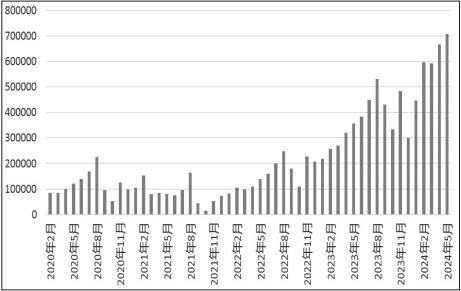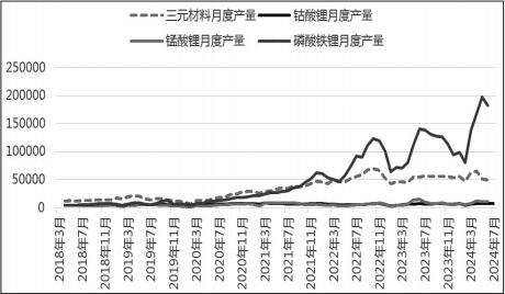 图为锂电正极材料月度产量(单位:吨) 我们把目光投向整个锂电新能源产业链,会发现不只是碳酸锂价格下跌,从上游锂矿石到下游正极材料、电芯价格,均有所下降。中国作为世界上最大的锂资源需求国和进口国,成本端价格下跌,尽管部分企业会产生存货跌价损失,但对整个锂电新能源产业链及终端消费者来说无疑是可喜的趋势。 锂电新能源产业链价格信号反映了供需形势的相对变化。同时,从总量上看,2024年上半年锂盐及锂电新能源产业链的运行态势显然是供需两旺的。锂盐供应维持良好攀升势头。截至2024年6月,国内碳酸锂月度产能94782吨,近半年增幅19.17%。1—6月,国内碳酸锂产量共计29.71万吨,同比增长48.18%。2024年1—5月,碳酸锂进口量8.68万吨,同比增长42.05%。锂盐需求态势同样旺盛。2024年上半年,国内三元材料产量33.2万吨,同比增长16.7%;国内磷酸铁锂材料产量86.35万吨,同比增长60.14%;钴酸锂、锰酸锂等正极材料生产也保持良好发展势头。 锂电新能源行业终端需求快速增长,是锂盐维持供需两旺的关键。中国汽车工业协会数据显示,2024年5月,新能源汽车产销分别完成94万辆和95.5万辆,同比分别增长31.9%和33.3%,市场占有率达到39.5%;1—5月,新能源汽车产销分别完成392.6万辆和389.5万辆,同比分别增长30.7%和32.5%,市场占有率达到33.9%。据乘联会初步统计,6月份,中国乘用车新能源市场零售86.4万辆,同比增长30%,环比增长6%,今年以来累计零售411.9万辆,同比增长33%;6月份,全国乘用车厂商新能源批发97.5万辆,同比增长28%,环比增长8%,今年以来累计批发461.2万辆,同比增长30%。这些让人惊喜的数据是锂电新能源汽车领域高质量发展动能的体现,也离不开政策端对新能源汽车行业的呵护。