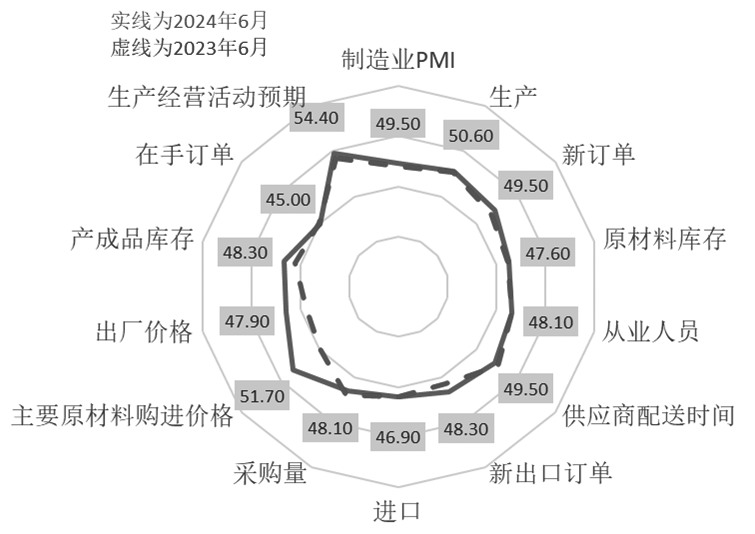 图为不同期限国债收益率走势(单位:%) 近日公布的数据显示,6月,国内官方制造业PMI为49.5%,与前值持平。其中,多数分项指标持平甚至好于去年同期。具体来看,主要原材料购进价格、出厂价格分项分别为51.7%、47.9%,分别较上月回落5.2和2.5个百分点;生产、生产经营预期、原材料库存、各类订单、从业人员、进口等分项与上月持平或接近;产成品库存分项较上月上升1.8个百分点。产成品库存增加反映实体需求仍显不足、制造业被动累库的问题。6月,财新制造业PMI指数为51.8%,前值为51.7%,连续8个月高于50%的分水岭。其中,生产分项连续5个月在扩张区间内走高,新订单、新出口订单分项虽边际走弱,但保持在50%上方,数据整体反映出中小企业经营持续改善,制造业供需动能增强。