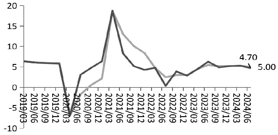 建议逢低入多IF+ 随着稳增长政策的发力,经济延续恢复向好态势,企业盈利边际改善,从估值上利多期指表现,加之“科特估”行情继续发酵,期指操作上可逢低入场IF多单。 近期,在A股估值较低、监管政策呵护市场、上市公司开启回购潮的背景下,风险偏好回升,期指止跌企稳。7月9日至17日,上证综指自低位反弹1.38%,IF、IH、IC、IM主力合约分别反弹3.38%、3.54%、1.96%和2.86%。 国内经济运行稳中有进 我国经济正处于从高速增长转向高质量发展的阶段,GDP增速放缓是转型期间必然面临的问题。2024年二季度,GDP同比增长4.7%,增速较前值回落0.6个百分点。从三大产业表现来看,受产业政策推进影响,第二产业对GDP的贡献率上升至43.6%,处于2022年6月以来的高位,而受地产较弱、金融“挤水分、防空转”监管导向的影响,第三产业对GDP的贡献率下降至52.6%,处于2022年6月以来的低位。当前,经济结构有所分化,表现为生产端较强而消费端偏弱,且外需强于内需。内需上,固定资产投资端制造业投资增速维持高速增长状态,而地产投资表现不佳,消费端服务消费强于商品消费。 为了进一步增强经济内生动力,宏观调控政策有望继续发力。财政政策方面,今年上半年地方债发行进度较慢,后续预计加速。截至7月15日当周,地方政府专项债累计发行1.57万亿元,发行进度为40.3%,低于历史同期水平。按往年惯例,用于项目建设的地方政府新增专项债券一般被要求在10月底前完成发行,故三季度专项债发行进度料加快,下半年基建投资增速也将随之提升。货币政策方面,央行货币政策委员会第二季度例会指出,“要加大已出台货币政策实施力度”,并“有效落实好存续的各类结构性货币政策工具”。展望下半年,随着稳增长政策的发力,经济持续向好,企业盈利边际改善,从估值上利多期指表现。