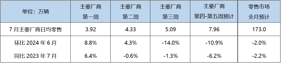乘联分会:7月狭义乘用车零售预计173万辆 同环比均降2%左右