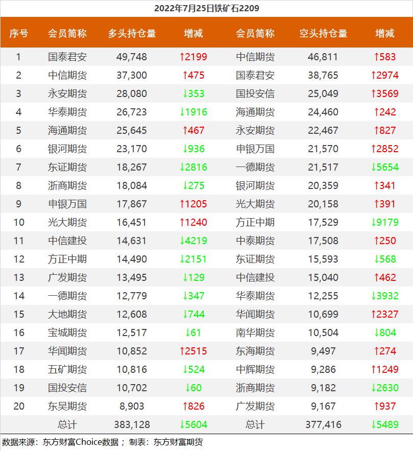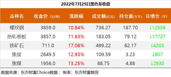 黑色持仓龙虎榜:铁矿石涨7.08% 南华期货减持近3万手螺纹多单