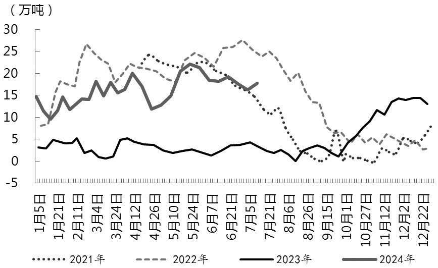 图为华东颗粒菜粕库存情况 7月以来,受供需面和消息面等因素影响,菜粕呈现高位回落后底部盘整走势,波动较豆粕剧烈。目前影响菜粕价格走势的因素主要有两个:一方面是加拿大菜籽新作产量预期以及美豆产量预期对蛋白粕的整体影响;另一方面是国内菜粕供需面边际变化。从供需面来看,菜粕供应压力短期难缓解,但是成本端存在利多支撑,基于盘面存在分歧,菜粕上行压力仍然较大。 全球菜籽供需维持紧平衡 美国农业部7月供需平衡报告显示,2024/2025年度全球油菜籽产量比6月预估值增加81.7万吨,比上一年度减少88.2万吨产量,其中欧盟产量同比减少110万吨,澳大利亚产量同比减少47.3万吨,加拿大产量同比增加120万吨。库存方面,2024/2025年度全球菜籽期末库存环比增加26万吨,同比减少70.3万吨。本期报告显示,本年度全球菜籽供需维持紧平衡。 另外,加拿大统计局数据显示,本年度加拿大菜籽种植面积为2200.7万英亩,高于3月预估的2139.4万英亩,但是比上年的2208.2万英亩减少0.3%。加拿大农业部在6月供需报告里预测2024/2025年度油菜籽产量为1810万吨,低于上年的1833万吨。 二季度以来,欧盟菜籽减产预期持续支撑本年度国际菜籽价格,而且随着加拿大菜籽进入关键种植期,天气问题开始进入交易,预计菜籽成本端表现相对稳定。 国内菜籽到港量维持近年高位 2024年国内菜籽到港量始终维持近年历史高位,三季度也将延续该格局。从供应端来看,国家粮油信息中心船期监测显示,三季度进口菜籽预计维持月均47万吨左右,菜籽周均开机率维持在40%以上。整体上,预计7—9月国内进口菜粕(含进口菜籽压榨)新增供给量在155万吨左右。从需求端来看,二三季度处于水产养殖旺季,菜粕需求处在季节性高峰,不过今年下游水产端需求较往年有所下降,1—5月水产饲料产量大幅减少,加上南方地区阶段性暴雨导致投苗延迟,进一步抑制菜粕需求,预计后市库存仍存在增加空间。 国内菜粕体量相对豆粕偏小,走出独立行情的概率较小,在供需面暂难改善的背景下,菜粕跟随全球大豆系和国内豆粕行情走势为主。当前不论是美豆还是国内豆粕,供需面均偏弱。美豆方面,市场交易中心仍在新作的种植情况上,7月美豆主产区天气表现良好,新作优良率处在近年历史同期较高水平,美豆本种植季供应宽松预期较为充分,限制美豆价格走高。国内方面,豆粕供强需弱格局没有明显变化,7—8月国内进口大豆到港仍处在偏高水平,胀库压力使得油厂维持高开机率,而下游提货进度尚难以消化供应端增量,豆粕仍维持周期性累库进度。 综合来看,全球菜籽紧平衡格局持续存在,欧盟菜籽减产已被市场反复交易,随着后市加拿大菜籽收割完成,全球菜籽需等待新驱动因素指引。美豆本种植季丰产预期较强,随着灌浆期的到来,需谨防天气因素对盘面的影响。价差方面,美豆成本端持续回落,供需面偏弱使得豆粕下方支撑相对较弱,豆粕、菜粕价差面临收窄。展望后市,三季度菜粕缺乏持续上行基础,维持偏空思路,重点关注美豆及加拿大菜籽本种植季产量预期变化。(作者单位:国元期货) (责任编辑:admin) |