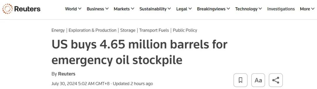 美国购买465万桶原油! 今天凌晨,据路透社报道,美国能源部表示,已敲定为战略石油储备(SPR)购买465万桶原油的合同,这些原油将在今年最后三个月运往路易斯安那州的储存点。 ![]() 美国能源部称,埃克森美孚将提供合同中的390万桶,而麦格理美国交易公司将提供其余部分。原油的平均收购价约为76.92美元/桶。此举旨在补充在2022年释放的创纪录1.8亿桶SPR。 不过,昨夜今晨国际油价持续走弱。截至收盘,WTI原油期货收跌1.75%,报75.81美元/桶。布伦特原油期货收跌1.66%,报79.78美元/桶。 此外,美国财政部网站发布的最新数据显示,美国联邦政府债务规模已突破35万亿美元大关。 ![]() 拜登宣布最高法院改革计划 据央视新闻客户端,当地时间7月29日,美国白宫官网发表声明,总统拜登宣布对最高法院进行紧急改革的计划。 美国《政治报》援引知情人士消息称,该计划预计会支持设定最高法院大法官任期限制,并支持实施具有约束力的职业道德规范。此外,该提案还可能包括一项宪法修正案,以限制总统和其他特定官员的豁免权。 据美国全国公共广播电台(NPR)报道,预计拜登将在当地时间29日晚些时候于得克萨斯州奥斯汀林登·约翰逊总统图书馆发表讲话时呼吁对最高法院进行改革。预计他将支持总统每两年任命一名大法官并在最高法院任职18年的制度。 报道称,预计他将呼吁国会通过具有约束力、可执行的行为和道德规则,要求最高法院的法官披露接受到的礼物、不要参与公开的政治活动,并回避他们或其配偶存在财务或其他利益冲突的案件。 报道还称,预计拜登还将呼吁修改宪法,限制最近最高法院裁决后总统享有的广泛豁免权。 NPR分析报道称,这些提议不太可能实现,因为宪法修正案或国会行动(这两条途径很可能需要)在当前的政治气候下几乎是不可能的。这些计划标志着拜登的重大转变,此前他一直反对对最高法院进行任何改变。 值得注意的是,当前美国大选的形势正在发生巨大转变。7月29日,参考消息网援引美联社报道,自从美国副总统卡玛拉·哈里斯上周成为最有可能获得民主党提名的总统参选人以来,她的竞选活动已经筹集了2亿美元。另据ABC新闻最新发表的民调显示,哈里斯的支持率在一周内从35%上升至43%。 美法多国紧急发声,集运指数(欧线)期货多个合约涨停 据央视新闻消息,黎以临时边界局势28日愈发紧张。当地时间28日白天至夜晚, 以色列军队与黎巴嫩真主党武装不断互相袭击对方目标。 联合国秘书长古特雷斯28日发表声明,对以色列占领的戈兰高地一城镇27日遭火箭弹袭击一事表示谴责,呼吁各方保持最大限度的克制。 当地时间28日,美国国务卿布林肯就黎以局势表示,美国方面正在与以色列政府进行对话,以色列有权捍卫其公民的安全,但美国不希望看到冲突升级、蔓延。他同时说,新一轮巴以冲突已经持续太久,达成加沙停火协议也将为黎以临时边界局势带来持久稳定。 当地时间28日,法国总统马克龙与以色列总理内塔尼亚胡通电话,强烈谴责发生在戈兰高地城镇迈吉达尔沙姆斯的火箭弹袭击,但是其没有直接提到“黎巴嫩真主党”。 马克龙同时强调,法国将尽一切努力,与各方进行沟通,避免该地区局势再次升级。 就以色列占领的戈兰高地城镇迈吉达尔沙姆斯遭火箭弹袭击一事,当地时间28日,伊朗警告以色列不要对黎巴嫩发起新的冒险行动。 根据黎巴嫩贝鲁特国际机场网站发布的信息,原定于当地时间29日0时至6时进出黎巴嫩首都贝鲁特的大部分航班被推迟或取消,航班涉及卡塔尔航空、土耳其飞马航空、埃塞俄比亚航空、土耳其航空和埃及航空。 中东局势进一步升级的风险正迅速上升,引起国际各方高度关注。分析人士警告,如果以色列真的采取大规模军事行动,这可能导致美国和伊朗等国家被迫搅入中东地区这摊浑水之中。 29日,集运指数(欧线)期货多个合约涨停,主力合约大幅走高,日内一度大涨超12%,截至收盘,涨幅仍高达8.09%,报收3926点。 ![]() 30年期国债期货再创新高 随着2年期国债期货、5年期国债期货和10年期国债期货主力合约接连创出年内新高,周一30年期国债期货随之上涨,盘中涨0.3%,最高至110.72,再度创下新高,收益率下行突破2.4%,报2.3975%。 “近期国债期货再创历史新高主要是定价新一轮降息预期。”一德期货金融衍生品高级分析师刘晓艺表示,7月22日央行宣布将公开市场7天期逆回购操作调整为固定利率、数量招标,同时,为进一步加强逆回购周期调节,加大金融支持实体经济力度,下调7天期逆回购操作利率10BP至1.7%。随后,央行下调一年期、五年期LPR利率和各期限SLF利率10BP,当日国债收益率曲线较前一日明显下行。7月25日期货开盘前央行意外开展月内第二次MLF操作,并下调1年期MLF利率20BP,长端利率出现明显补跌行情。7月29日,在权益市场继续走弱的背景下,30年现券突破重要关口2.4%,对应三十年国债期货再次创出历史新高。本轮降息超出市场预期,在消息公布后,各期限的国债收益率轮动下行8~9BP,表明政策利率下调打开国债收益率下行空间。在权益和商品市场持续走弱的情况下,更多资金青睐配债推动了近期国债期货的上涨行情。 除上述原因外,中信建投期货国债首席分析师孙玉龙提到,各大银行跟随调降存款利率也助推近期多个国债期货品种年内创新高。六家国有大行集体下调人民币存款挂牌利率,降幅在5BP至20BP不等。对于
