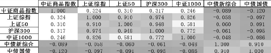 表为股债商的历史平均相关系数