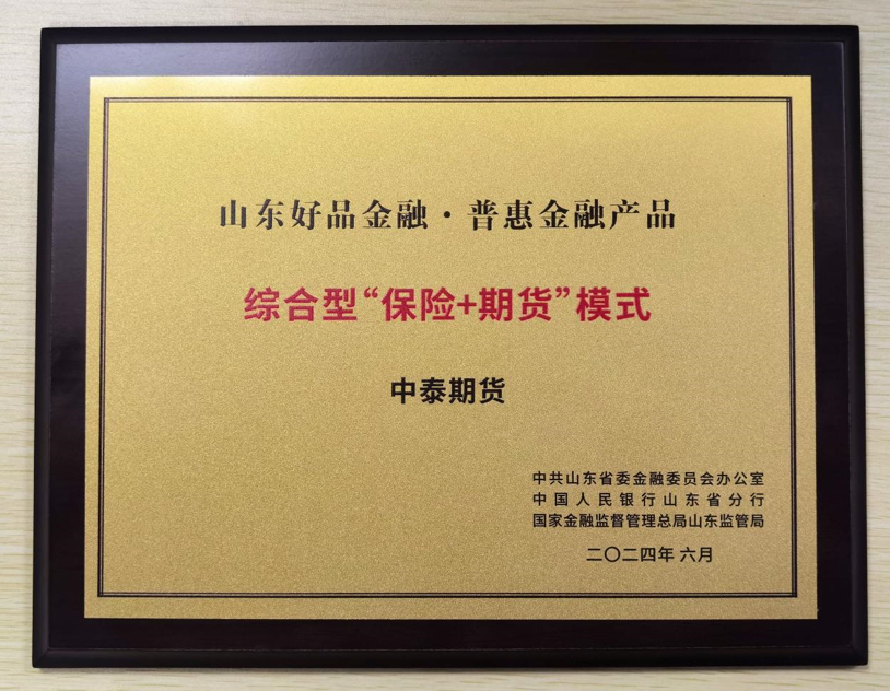 中泰期货综合型“保险+期货”模式荣获山东省2023年度“好品金融”产品