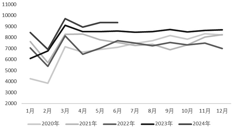 图为中国橡胶轮胎外胎产量(单位:万条) 2024年以来,三个橡胶品种联动性增强,且由于BR的持仓量与交易量远不及RU,BR难以走出独立行情,大部分时间是跟随两个天然橡胶品种波动。2024年1—7月,BR走势呈现震荡上行的趋势,其中不乏触及涨停的行情,我们将BR走势分为三个阶段: 第一阶段,1月,丁二烯港口库存偏低,价格上涨,对BR形成支撑,但随着顺丁橡胶停车装置陆续重启,供应逐步放量,压制BR上涨高度。2月,丁二烯价格仍在上涨,带动BR上行。 第二阶段,3—5月,丁二烯港口库存维持低位,丁二烯的高价造成顺丁橡胶行业的亏损,行业开工率不断下滑,库存自高位持续去化,同时,天然橡胶原料供应频繁出现超预期事件,使得天然橡胶迎来多个上涨行情,BR跟随RU与NR上涨。 第三阶段,6—7月,6月初丁二烯供应回归不及预期,港口库存自低位下滑,同时,顺丁橡胶行业仍亏损,开工率低位,而库存已去化至低位,因此,BR接过天然橡胶上涨的接力棒,增仓大涨,一度在6月7日触及涨停,且在6月13日创上市以来新高,领涨橡胶板块,随后由于市场投资行为降温与天然橡胶供应回归预期,橡胶板块回调整理。 [后市展望] 7月以来,成本端丁二烯装置检修较之前减少,且进口量有回归预期,但是基于对原油价格区间震荡的预估下,炼厂利润提升空间有限,使得一体化装置开工率提升空间受限,且下游新装置投产所需丁二烯明显超过丁二烯新增产能,因此,丁二烯存供需偏紧预期,对丁二烯价格形成支撑。供应端顺丁橡胶新装置投产存有变数,同时预计利润承压,开工率提升空间受限。需求端政策利好支撑轮胎国内配套需求,由于货运行业无明显起色,且可持续性偏弱,对于全钢胎的替换需求提振有限,因此,整体需求来看半钢胎好于全钢胎。此外,虽然欧美存有贸易壁垒且海运成本提升,但海外新兴市场使轮胎出口韧性较强。因此,预计今年剩余时间里BR运行区间在13000~18000元/吨,单边策略建议逢低做多,需关注与天然橡胶的联动。(作者单位:广发期货) (责任编辑:admin) |