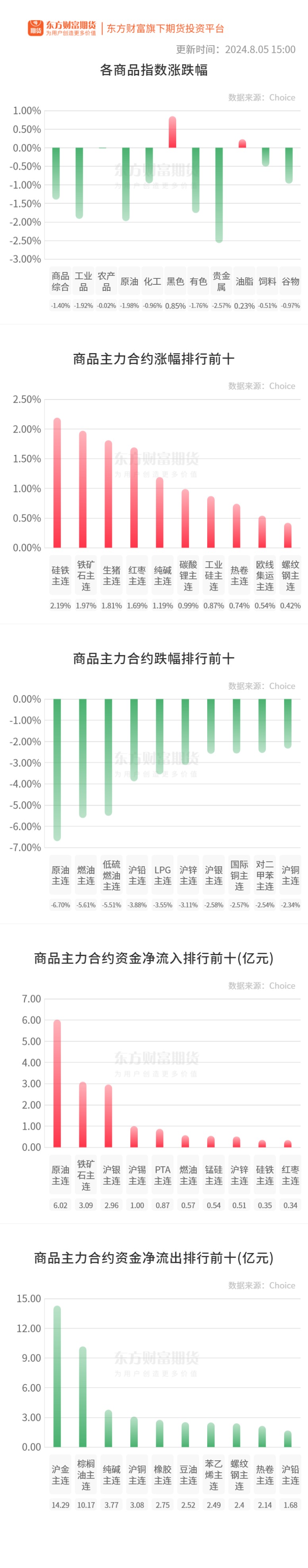 行情纵览![]() 宏观产经证券时报:8月5日,全球金融市场恐慌情绪还在蔓延。午后,亚太股市暴跌,日股继续重挫,韩股暴跌触发熔断机制。澳大利亚股市也未能幸免,基准股指下跌超过3%,创下自2022年6月以来的最大单日跌幅。台湾证交所加权股价指数收盘下跌8.4%,为历史最大单日跌幅,报19830.88点,跌至4月23日以来最低收盘水平。引爆全球恐慌情绪的导火索是上周美国非农数据不及预期,引发市场对美国经济衰退的预警。但这种情况下,美联储依然坚持不降息。 每日经济新闻:8月5日亚市早盘,在亚太市场重挫、美股期货走低之际,离岸人民币盘中则强势拉升逾500个基点。上个交易日,离岸人民币收涨851个基点。关于人民币连番上涨,中金公司外汇研究专家李刘阳表示,外部环境的变化导致套息交易平仓以及稳汇率政策发力或是人民币汇率近期反弹的两个主要原因。 品种资讯黑色系期货 铁矿石:7月29日-8月4日中国47港铁矿石到港总量2805.1万吨,环比增加935.9万吨;中国45港铁矿石到港总量2610.7万吨,环比增加788.7万吨;北方六港铁矿石到港总量为1379.5万吨,环比增加403.9万吨。(我的钢铁网) 2024年7月29日—8月4日Mysteel澳洲巴西铁矿发运总量2535.9万吨,环比增加48.3万吨。澳洲发运量1810.2万吨,环比增加242.0万吨,其中澳洲发往中国的量1520.2万吨,环比增加385.5万吨。巴西发运量725.7万吨,环比减少193.7万吨。(我的钢铁网) 钢材:可能受宏观强预期推动,今日市场情绪偏好,黑色期货震荡上涨,带动部分钢材现货市场跟涨。考虑到当前钢市多空交织,需求弱现实或制约钢价反弹高度,短期钢价或震荡偏强。(我的钢铁网) 农产品期货 生猪:截至今日14:00时,全国农产品批发市场猪肉平均价格为25.42元/公斤,比上周五上升0.4%;牛肉60.28元/公斤,比上周五上升0.5%;羊肉59.01元/公斤,比上周五下降0.2%;鸡蛋9.89元/公斤,比上周五上升0.7%;白条鸡17.82元/公斤,比上周五上升1.5%。(财联社) 大豆:国家粮油信息中心预测,预测2023/24年度我国大豆新增供给量11784万吨,其中国产大豆产量2084万吨,大豆进口量9700万吨。预计年度大豆榨油消费量9670万吨,同比减少10万吨,减幅0.1%。(国家粮油信息中心) 中储粮网发布8月5日油脂公司国产大豆购销双向竞价交易结果,计划成交59136吨,成交数量34596吨,成交率59%。(中储粮网) 有色/贵金属期货 沪锌:截至本周一(8月5日),SMM七地锌锭库存总量为15.14万吨,较7月29日减少0.77万吨,较8月1日减少0.01万吨,国内库存录减。上海地区库存录增,主因进口锌锭陆续到货,仓库库存增加,下游刚需采购提货,整体库存增加明显。(上海有色网) 碳酸锂:8月5日,上海钢联发布数据显示,今日电池级碳酸锂价格较上次持平,均价报7.95万元/吨。(每日经济新闻) 能化期货 原油:从需求端看,美国经济数据表现不佳以及多数亚洲和欧洲国家制造业数据疲软,加大了全球经济放缓的风险,原油需求承压。而在供应端,上周四举行的“欧佩克+”部长级会议维持石油产量政策不变,并计划从10月开始逐步取消减产措施。供应大于需求的预期令国际油价近期承压下行。(央视财经) 苯乙烯:截至8月5日,江苏苯乙烯港口样本库存总量4.44万吨,较上周期减1.13万吨,幅度降20.29%。商品量库存在2.92万吨,较上周期减0.9万吨,幅度降23.56%。苯乙烯江苏社会库存到船、管输及车卸总量2.9万吨,本周提货4.03万吨。目前消息看,8月上抵港补充有略增预期,而港口提货趋向小幅波动,预期港口库存有小幅去库空间。(隆众资讯) 尿素:今日尿素行情涨跌互现,部分主流地区调整幅度在10-20元/吨。(农时达情报) 晚间关注无 (文章来源:东方财富研究中心) (责任编辑:admin) |